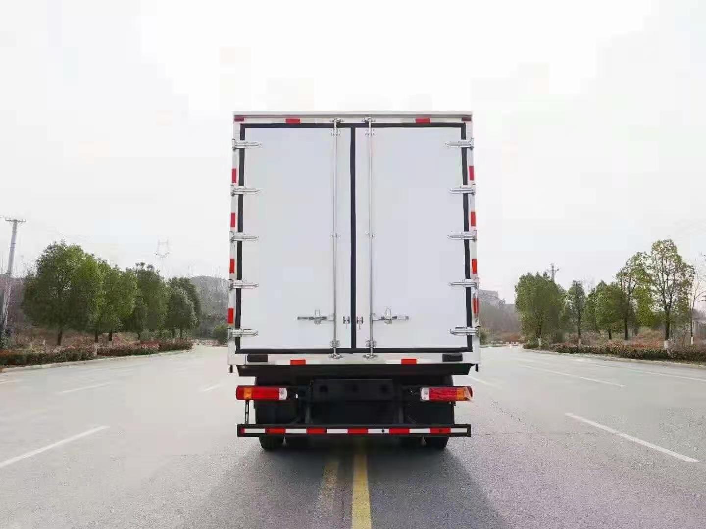 國六福田奧鈴大黃蜂冷藏車廂體材質采用內外玻璃鋼,中間8CM聚氨酯保溫板,后雙開門,廂體右側靠前選裝開側門,底部采用花紋防滑鋁板,前部排水孔,門邊條采用迷宮式橡膠密封條,鋁合金型材包邊,不銹鋼包角,不銹鋼門鎖,不銹鋼門框及合頁,廂體內節能LED照明燈。