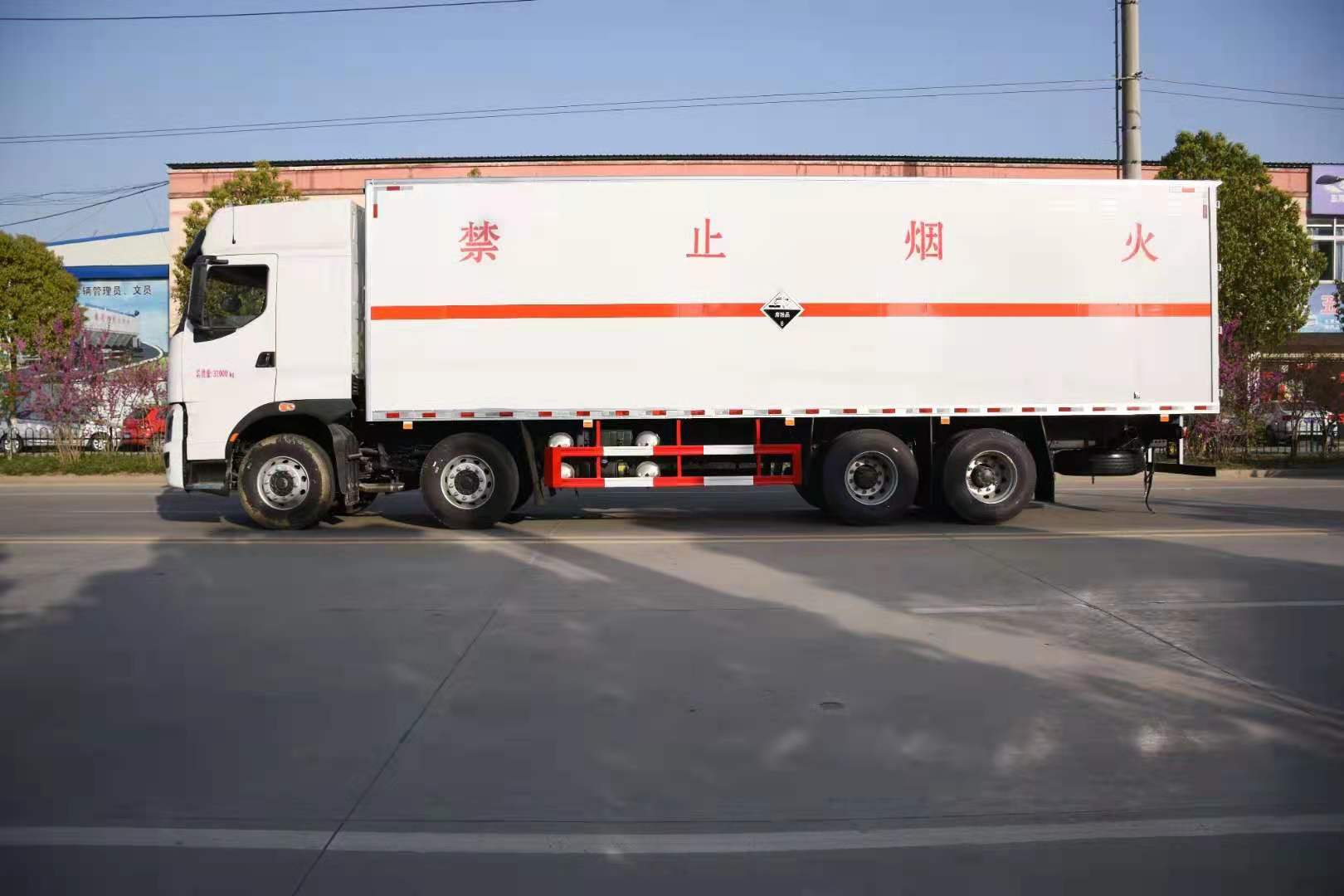 東風(fēng)柳汽前四后八國六危險品廂式車采用東風(fēng)柳汽危險品車專用底盤,H7駕駛室,軸距2050+4400+1350mm,玉柴400馬力發(fā)動機(jī) ,12JSD180TA(鋁),282(8)車架,2*5.5T盤式前橋,后橋2*440/ 3.7/加寬制動器12R22.5,板簧3/3/-,400L鋁合金油箱,全氣囊駕駛室懸置、電動液壓翻轉(zhuǎn)、電動玻璃升降器、自動空調(diào)、真皮多功能方向盤、電動電加熱后視鏡、定速巡航系統(tǒng)、WABOC閥、ABS、中控鎖、輕量化鋼圈、前置排氣管、前輪防爆胎裝置、排氣火花熄滅器、危險品運輸頂燈、ECU限速裝置(限速80km/h)、駕駛室電源總開關(guān)、導(dǎo)靜電橡膠拖地帶,帶EBS、TPMS、LDWS、FCW。