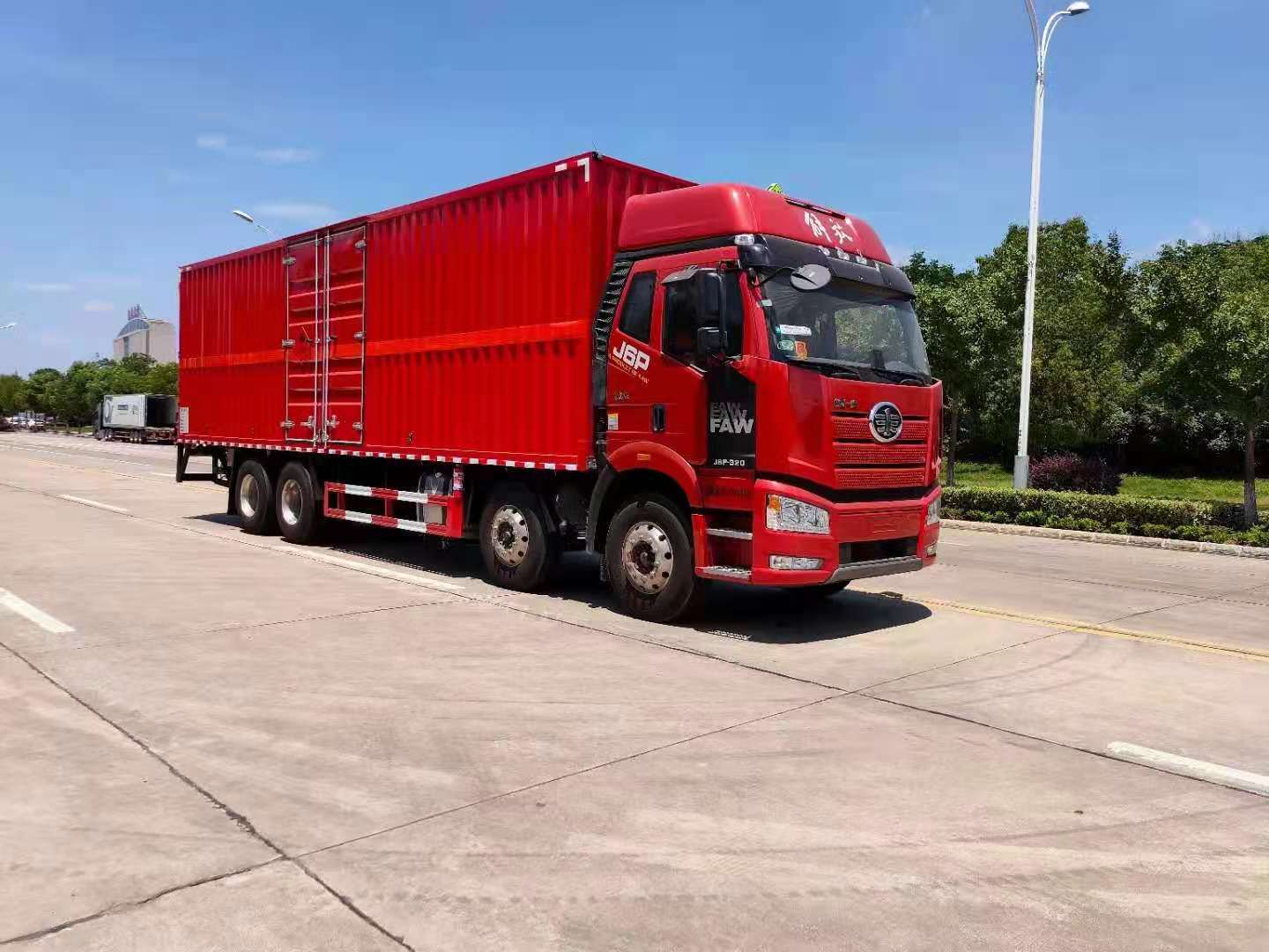 新款解放前四后八320馬力易燃液體廂式運(yùn)輸車可選瓦楞廂體也可選復(fù)合板廂體,加裝液壓尾板不超重,歡迎各新老客戶來(lái)電咨詢訂購(gòu)!