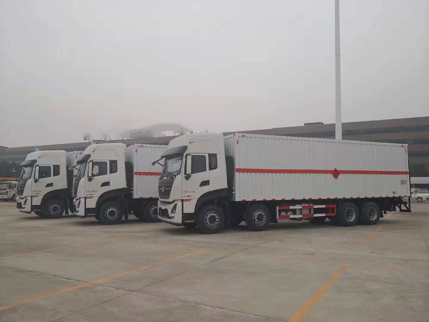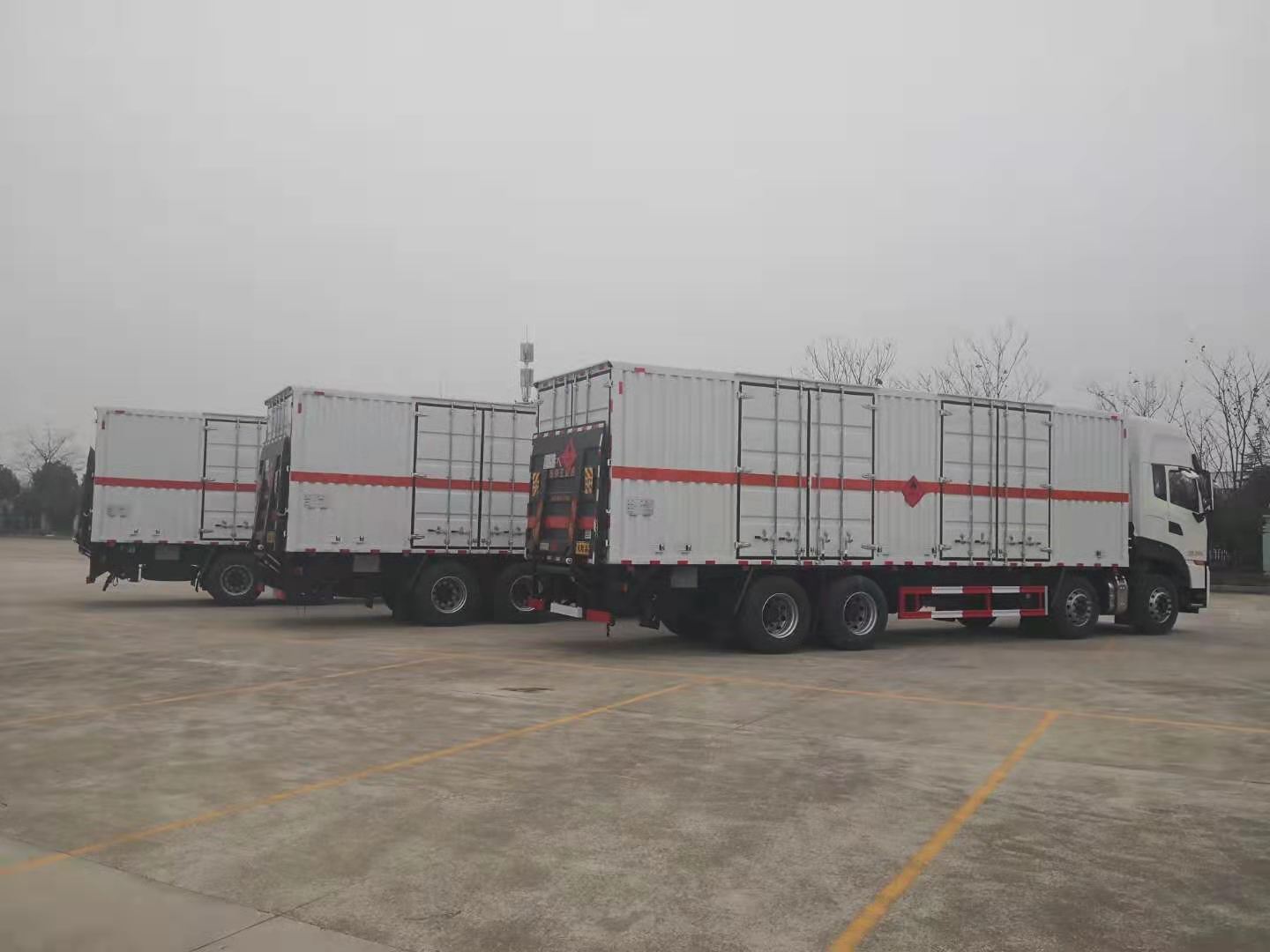 東風天龍前四后八國六廂式運輸車采用D320天龍KL駕駛室,龍擎DDi75E350-60發動機(沃爾沃技術),陜齒9JS135TA變速箱,前5.5噸,后10噸,1995+4500+1350mm軸距,295/80R22.5 18PR真空胎,鋁350L油箱,帶空調,電動玻璃,遙控鑰匙,行車記錄儀,氣囊座椅,前盤,后鼓,ECU限速,后橋空懸。帶EBS(電控制動系統),FCWS(防碰撞預警),LDWS(車道偏離預警),TPMS(前軸單臺胎壓監測)ESC,EACS(駕駛室氣囊調節),AEBS。外板采用1.2mm厚冷軋鋼板壓瓦成型,內部槽鋼骨架,底板采用3mm花紋板上鋪設防靜電膠皮。廂體右側開對開門,后部設置對開門,廂體內部兩側安裝捆綁貨物的臥環。廂體內部安裝煙霧報警器及防盜報警感應器。