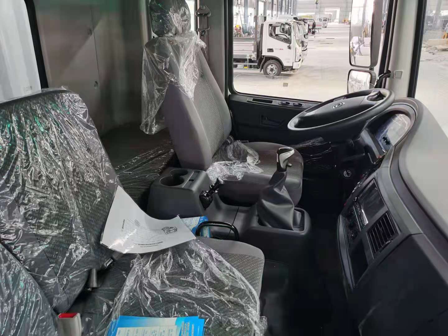 東風多利卡D9國六瓦楞廂式運輸車采用沖壓成瓦楞板,以公告為準。內加強“幾”字型加強梁,車體底板加強處理并做防靜電處理。車體的左側、右側,和后欄板栓鉤結構,可向下打開,方便上下貨物,車體為空曠式車型,大大減少了運輸物品因為狹窄空和強烈碰撞產生氣瓶爆炸的危險性,箱體外觀涂裝白色油漆,在欄板的中間位置粘貼橙色的;嚇藥В⒃谲圀w的左、右、后部粘貼“易燃氣體”或“不燃氣體”標識。駕駛室內部配備兩只滅火器,后杠處安裝防追尾事故的緩沖固定塊。此款車輛屬于國家規定的危險品二類危險品運輸車。