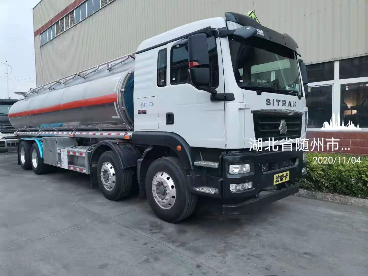 汕德卡國六26方鋁合金運油車優勢:1.同樣的車型用鋁合金罐體可以拉的更多。鋁合金油罐車罐體屬鋁鎂合金,材料密度比較小,因而同等容積的罐體相對碳鋼來說質量更輕一些。