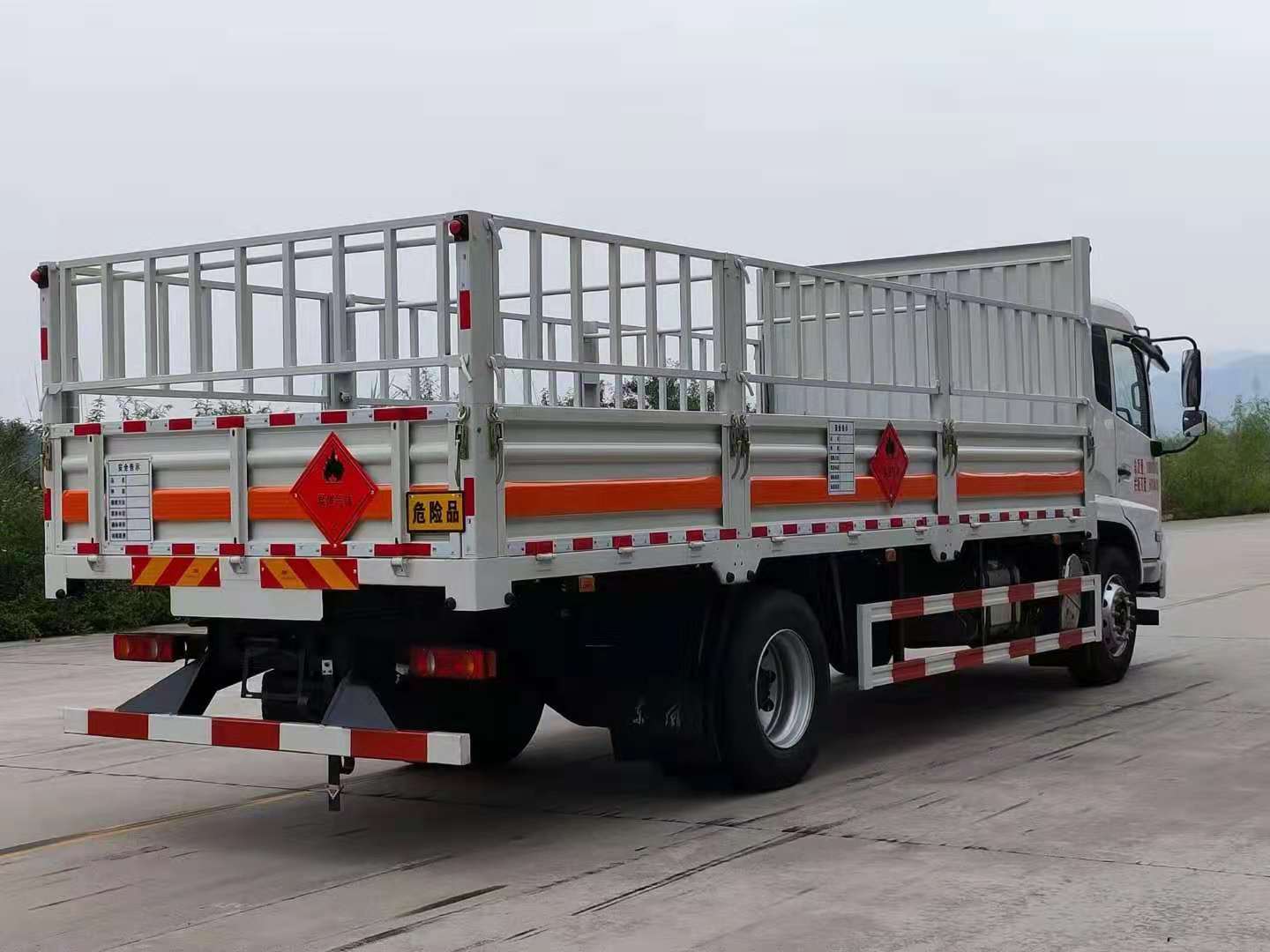 液化氣瓶指的是用來儲存液化氣的儲罐,其內部的液化氣壓力很大,稍有不甚就會引起爆炸,東風天錦6米8國六液化氣瓶配送車是選用了天錦危險品車專用底盤,廂體采用了欄板式和花欄式結構,尾板采用了靜電拖帶防止倒靜電。廂體底部鋪設靜電膠皮,廂體內部設置有臥環,固定貨物更方便。