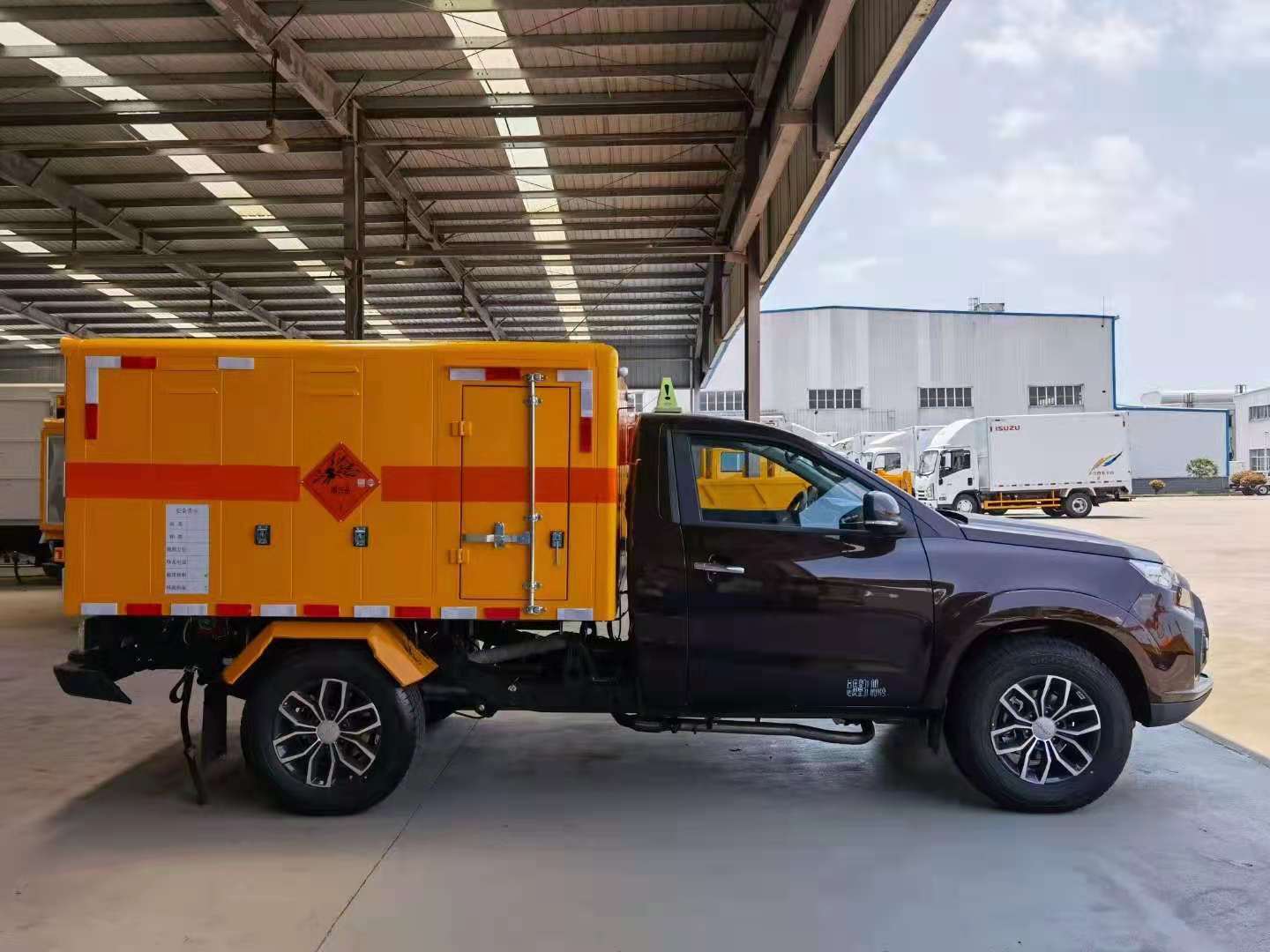 江鈴皮卡國(guó)六爆破器材運(yùn)輸車采用國(guó)六江鈴域虎四驅(qū)皮卡底盤,發(fā)動(dòng)機(jī)搭配彪馬104kw(140馬力),四驅(qū),帶電動(dòng)門窗、中控鎖、空調(diào),245/70R17真空胎。帶車道偏離預(yù)警,防碰撞預(yù)警。廂體嚴(yán)格按照公告尺寸制作。外板采用1mm厚冷軋鋼板帶百葉窗,內(nèi)飾為導(dǎo)電性能良好的鋁平板有透氣孔,矩形骨架結(jié)構(gòu)內(nèi)部填充防潮阻燃材料。廂體四周鋁合金包邊及包角,車廂底板鋪設(shè)防靜電膠皮,后部設(shè)置對(duì)開門,廂體內(nèi)部?jī)蓚?cè)安裝捆綁貨物的臥環(huán)。廂體內(nèi)部安裝煙霧報(bào)警器及防盜報(bào)警感應(yīng)器。帶菱形告示牌、安全告示牌、危險(xiǎn)品牌、拖地靜電帶。