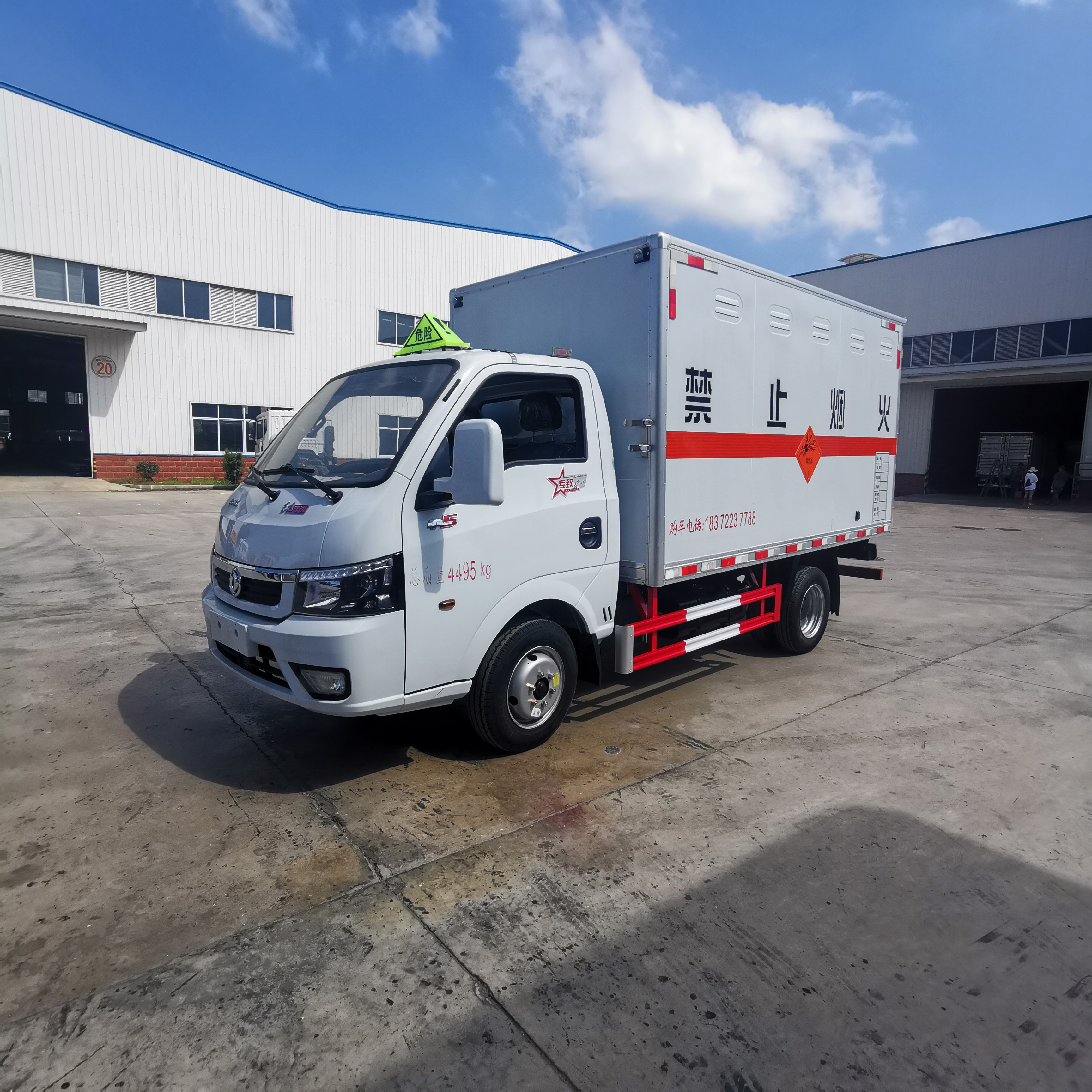 東風途逸國六帶中開側門柴油民爆車嚴格按照公告尺寸制作,外板采用1mm厚冷軋板有一次性成型的百葉窗,內飾為導電性能良好的鋁板有透氣孔,內襯為矩形管骨架牢靠穩定,內部填充為透氣防潮阻燃的擠塑板,四種材料經現代工藝復合而成,廂體外部上下鋁合金型材包邊,底板和車廂前下部鋪橡膠皮,后門雙開,右側中部單開門,霧報警器和門防盜報警器,嚴格按照國家危險品相關法規張貼。