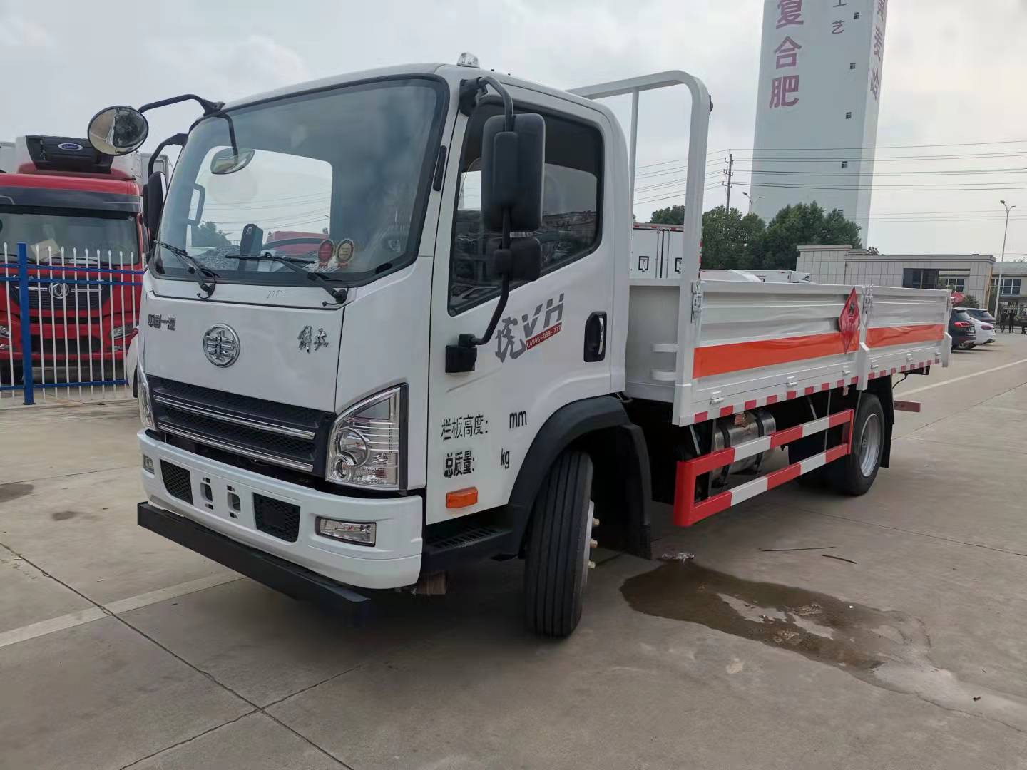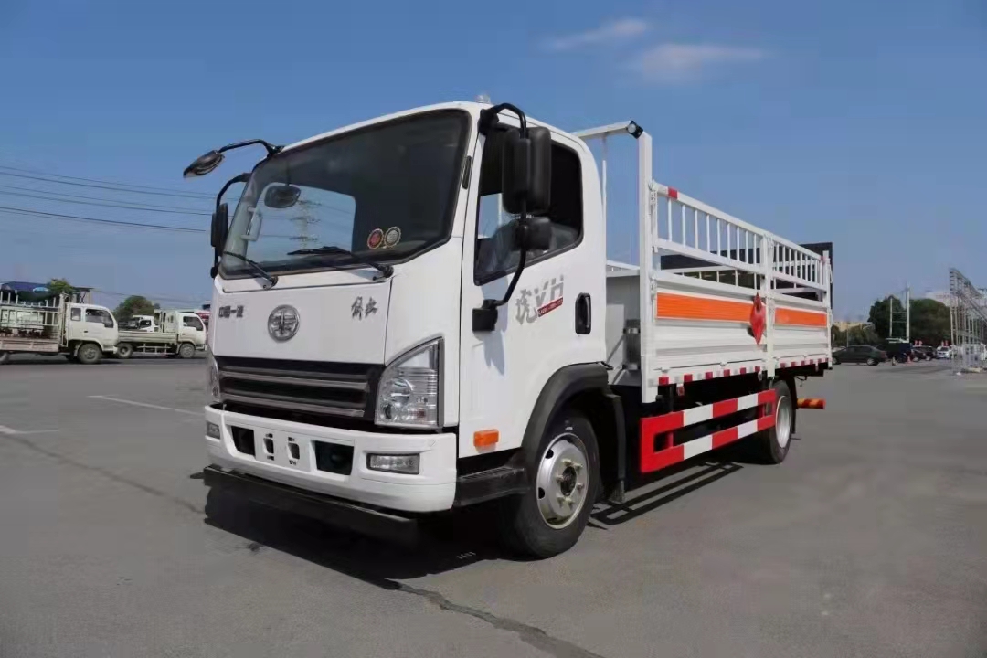 5米1解放J6F國六丙烷運輸車標配3個厚的底板,墻板為1.2個厚的冷軋板,底板配有靜電膠皮,選裝液壓尾板,底板加厚,橫梁加密。氣瓶車定制熱線:13872880150陳經理/18372237788楊經理,公司網站:www.gzebuy.com.cn,程力專汽愿竭誠為您服務!上部高欄中部打斷或底板立柱打斷,選裝瓦倫板結構墻板,平面板結構墻板,(可拆卸),選裝上部花欄上下翻轉或左右開啟.整車按照公告要求張貼反光標識,危險品標牌,安全告示等,靜電尾帶兩根.隨車配備手提滅火器,危險品三角頂燈,防護帽等,嚴格按照國家危險品法規進行“易燃氣體”標識粘貼等。隨車資料:機動車上戶發票,整車合格證,底盤合格證,隨車工具,服務手冊,保修手冊。