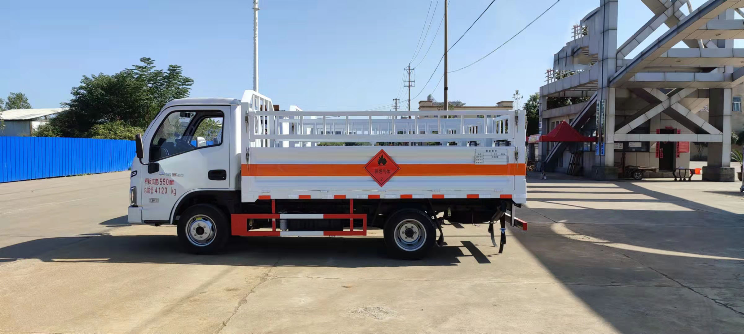 躍進S80國六氣瓶車標配3個厚的底板,墻板為1.2個厚的冷軋板,底板配有靜電膠皮,選裝液壓尾板,底板加厚,橫梁加密。氣瓶車定制熱線:13872880150陳經理/18372237788楊經理,公司網站:www.gzebuy.com.cn,程力專汽愿竭誠為您服務!上部高欄中部打斷或底板立柱打斷,選裝瓦倫板結構墻板,平面板結構墻板,(可拆卸),選裝上部花欄上下翻轉或左右開啟.整車按照公告要求張貼反光標識,危險品標牌,安全告示等,靜電尾帶兩根.隨車配備手提滅火器,危險品三角頂燈,防護帽等,嚴格按照國家危險品法規進行“易燃氣體”標識粘貼等。隨車資料:機動車上戶發票,整車合格證,底盤合格證,隨車工具,服務手冊,保修手冊。