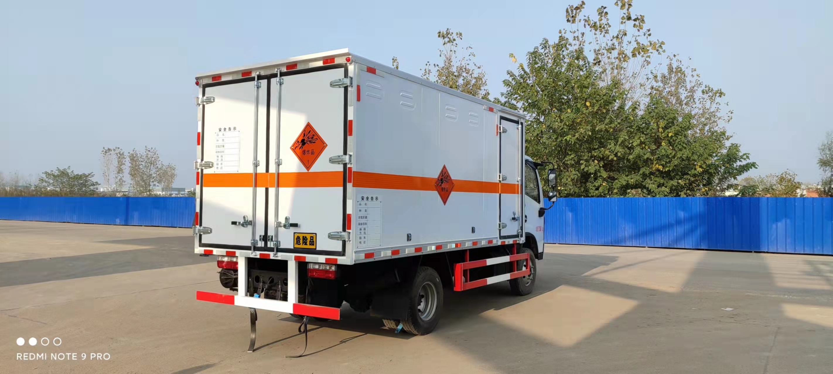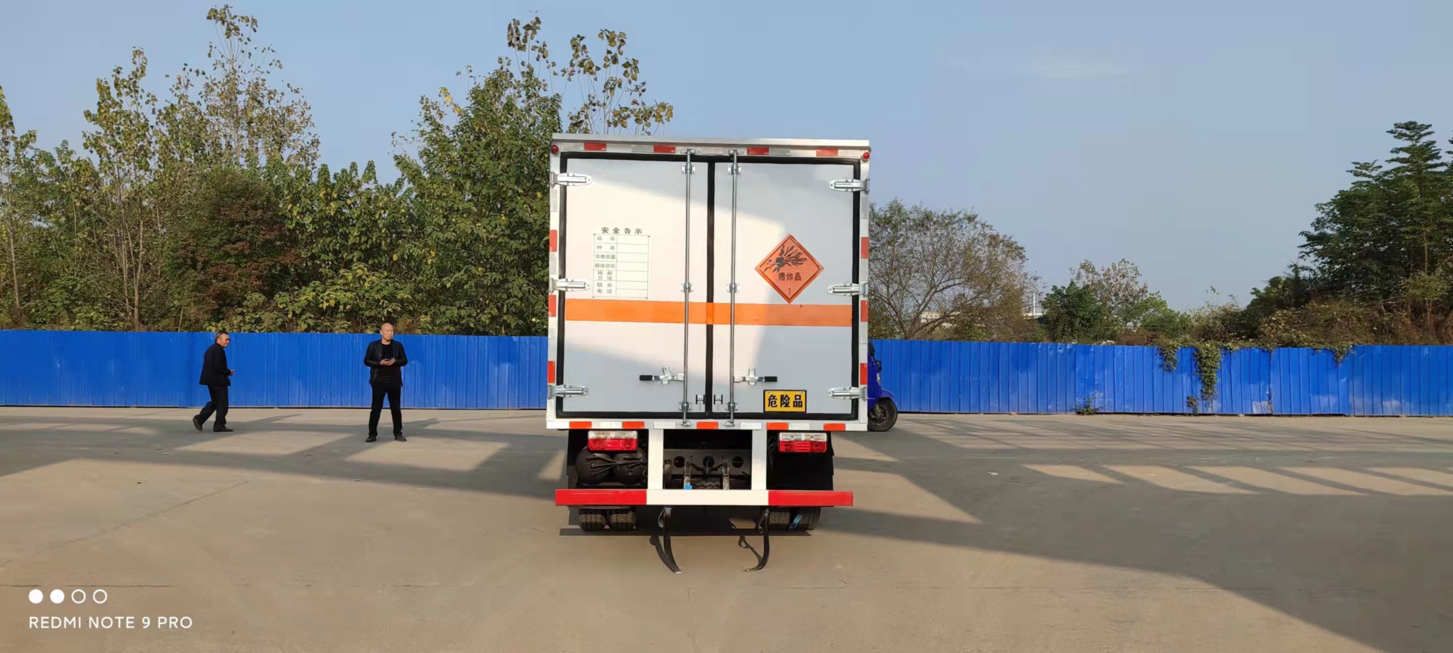 東風黃牌云內(nèi)126馬力國六民爆車采用的是雙面夾層結(jié)構,雙面夾層結(jié)構,外板采用免漆板有一次性沖壓成型的百葉窗,內(nèi)飾為導電性能良好的合金板有透氣孔,復合加鉚合工藝,內(nèi)襯為矩形管骨架牢靠穩(wěn)定,骨架內(nèi)部填充為透氣防潮阻燃材料。廂體外部四周鋁合金型材包邊,底板和車廂前下部鋪橡膠皮,后門雙開,右側(cè)單開側(cè)門,內(nèi)部裝固定貨物的臥環(huán),安裝煙霧報警器、防盜感應器。車身附件靜電接地帶、滅火器、防火罩、危險品三角燈、橙色反光帶、CCC反射器、菱形標志牌、危險品牌、安全告示齊全。