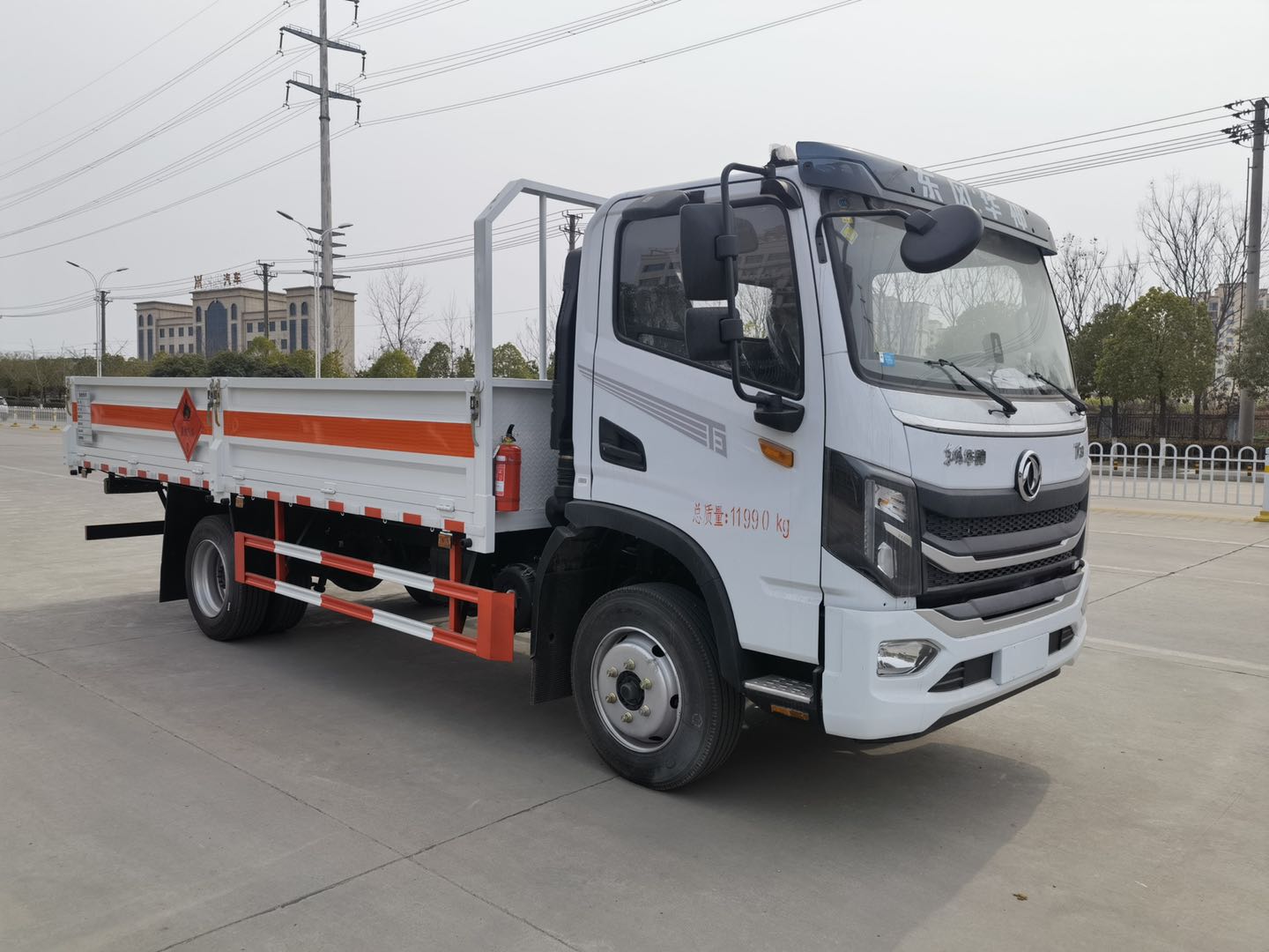 東風華神5米1國六氣瓶車廂體五開門,欄板內外飾均為冷軋鋼板,前龍門架。車廂底板采用4mm花紋鋼板并鋪設防靜電膠皮。帶靜電帶,滅火器,防火罩,危險品三角燈。法規反光標及危險品標識齊全。