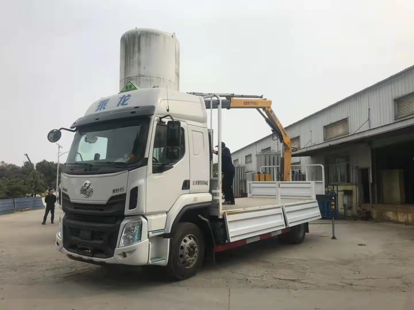氣瓶帶吊——東風柳汽一車多用,省力,省時,上下貨方便。整車型號:HCQ5187TQPLZ6-1型氣瓶運輸車,采用東風柳汽危險品車底盤,東風柳汽H5駕駛室,350L鋁合金油箱,5100mm軸距,玉柴245馬力,6缸發(fā)動機,9噸后橋,275/80R22.5胎,液壓機械翻轉、夾層玻璃、電動玻璃升降器、定速巡航系統(tǒng)、ABS、行駛記錄儀+兼容北斗GPS),中控鎖、空調,真皮多功能方向盤、前置排氣管、前輪防爆胎裝置、盤式前橋、ECU限速裝置(限速80km/h)、駕駛室電源總開關,T-BOX、EBS、TPMS、LDWS、FCW、AEBS。