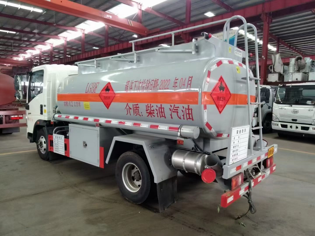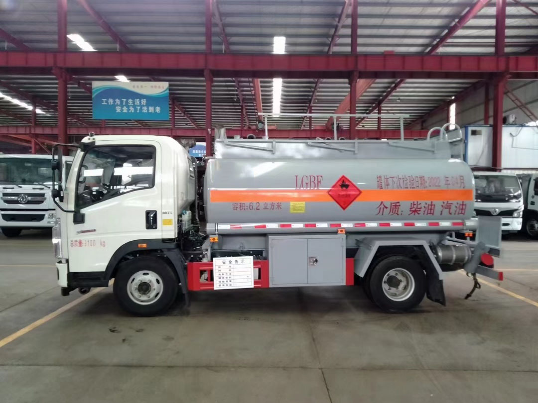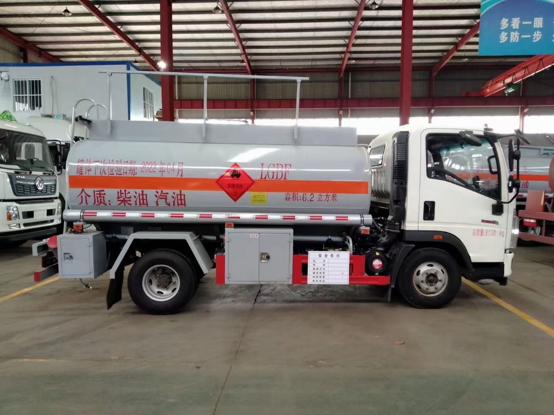 重汽豪沃加油車運(yùn)輸介質(zhì):汽,柴油。公告容積6.2立方,總質(zhì)量:9100kg ,額定載:4970kg,整備質(zhì)量: 4000kg,罐體材料采用Q235碳鋼,5mm(≥4.2mm),單倉(cāng)帶防浪隔板,帶輸油泵,可泵進(jìn)泵出,全套歐標(biāo)(一個(gè)歐標(biāo)罐口,一個(gè)海底閥,下裝油口、廢氣回收、防溢流探桿及靜電插座),智能海底閥報(bào)警系統(tǒng),一個(gè)工具箱,折疊護(hù)欄,罐尾一個(gè)爬梯,兩個(gè)反光板,一個(gè)防火帽,兩根與罐長(zhǎng)等長(zhǎng)輸油管,兩個(gè)滅火器,罐體防銹漆,貼3M牌反光條,反光帶,安全告示,三個(gè)“易燃液體”標(biāo)。