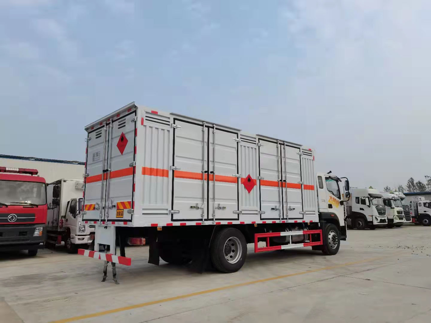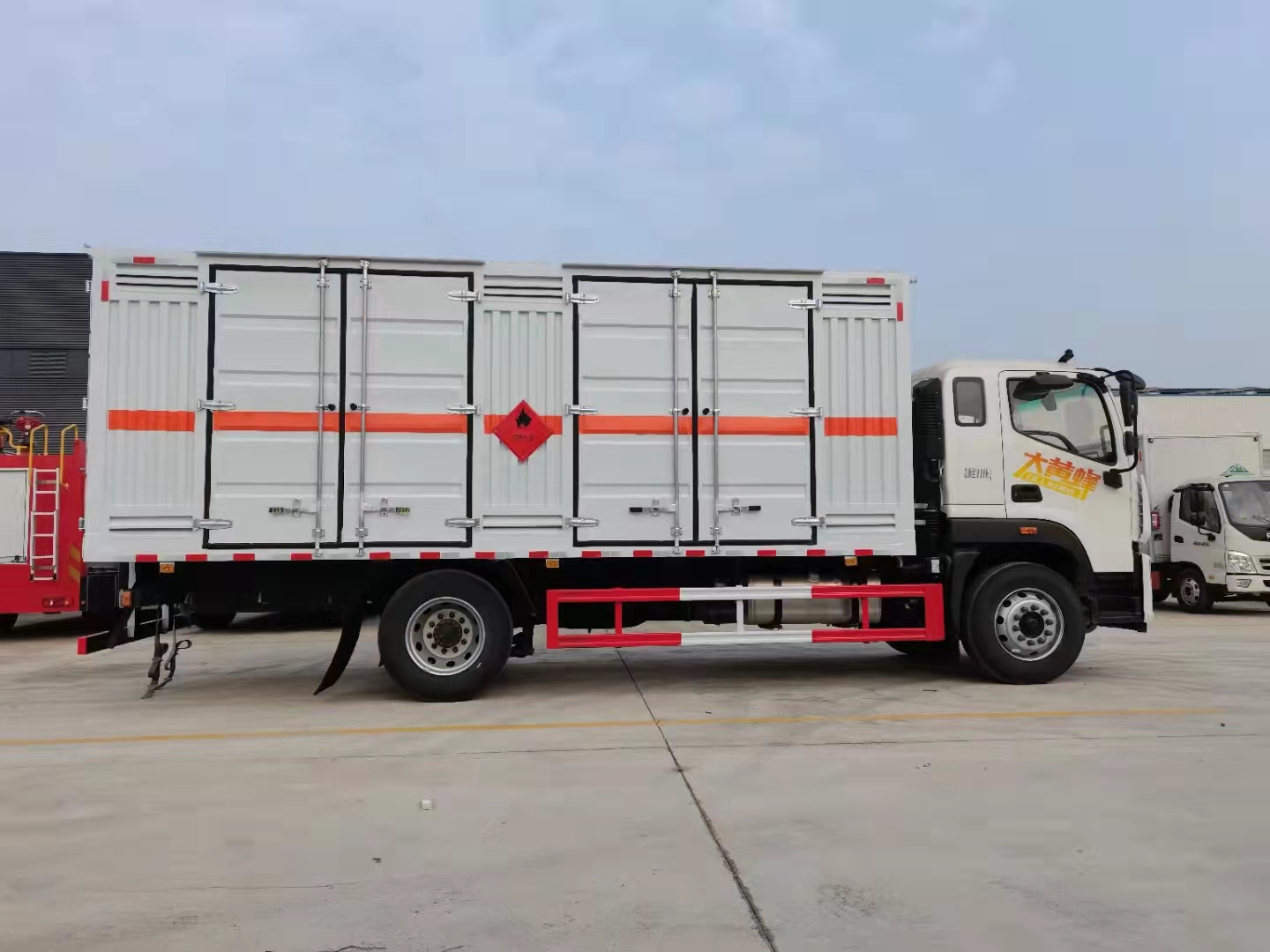 福田歐航6米8國六危化品車外形尺寸:8600*2550*3500,廂體內部尺6200*2400*2200,廂體為單層瓦楞板結構。底板為花紋板,上鋪防靜電膠皮。廂體右側開2對雙側門,上百葉窗下透氣孔,廂體前墻板及后門位置如公告圖片所示:后門位置做兩扇百葉窗戶,后部帶防盜報警器,頂部帶煙霧報警器,其他嚴格按照公告制作。