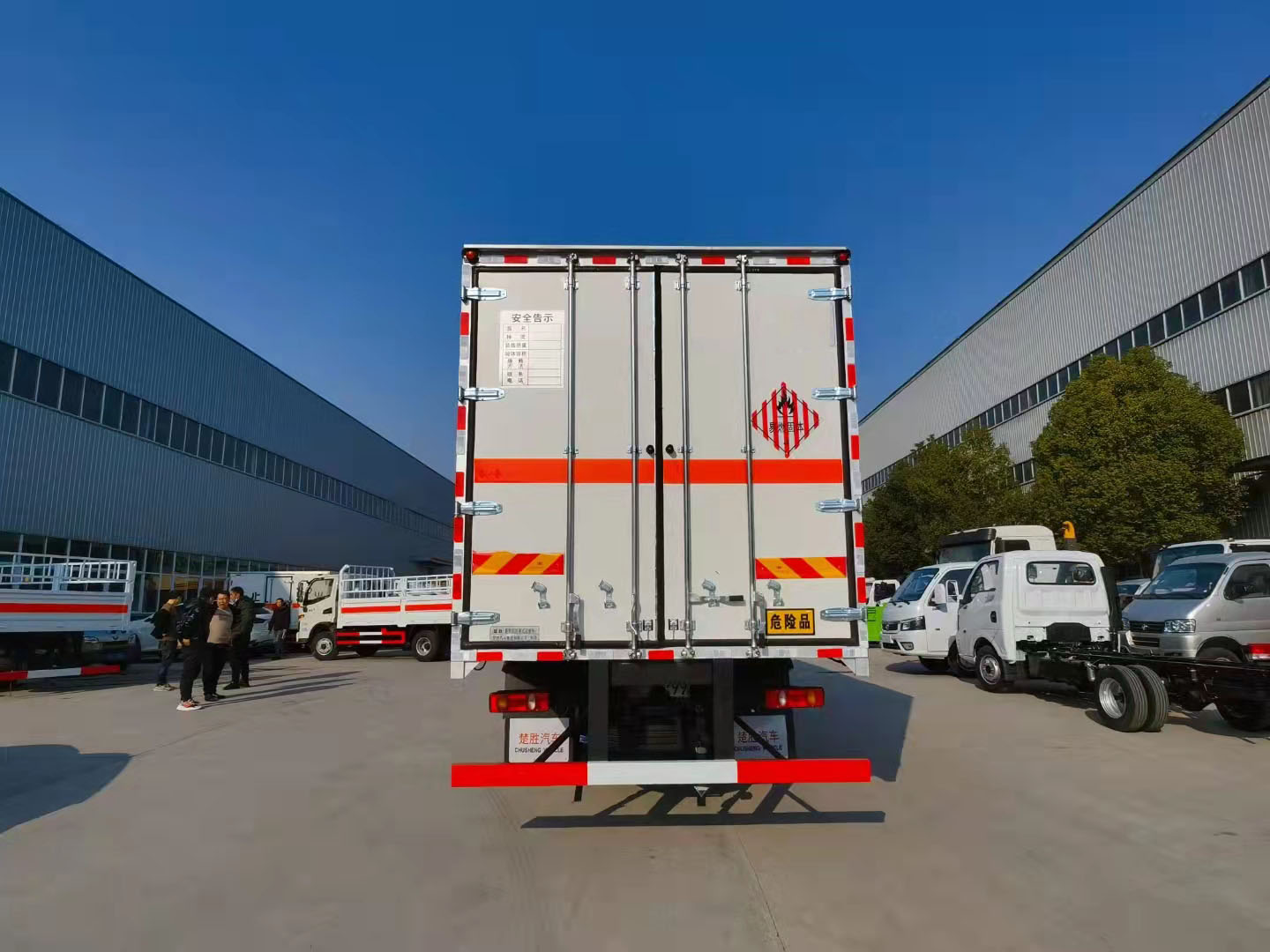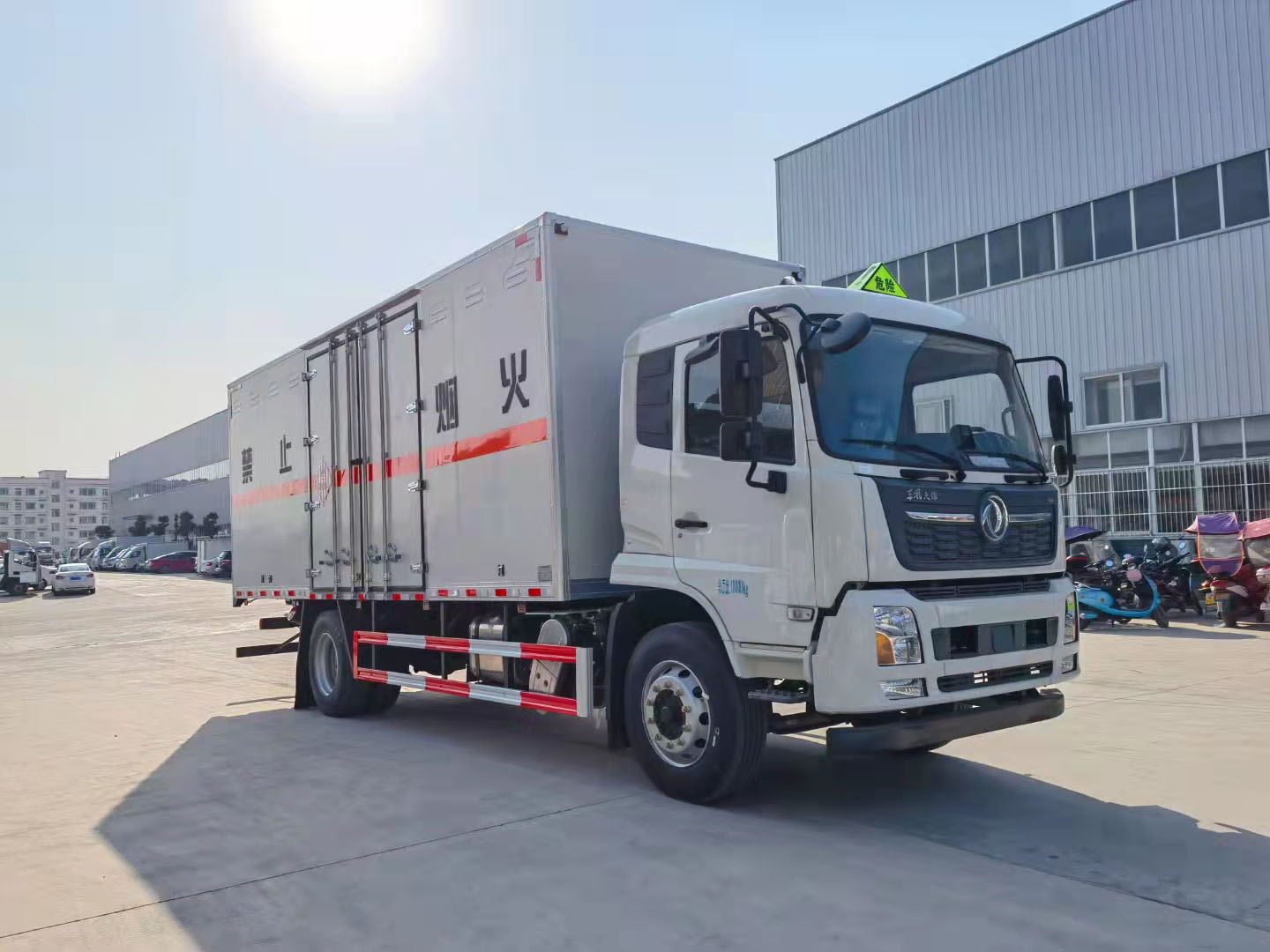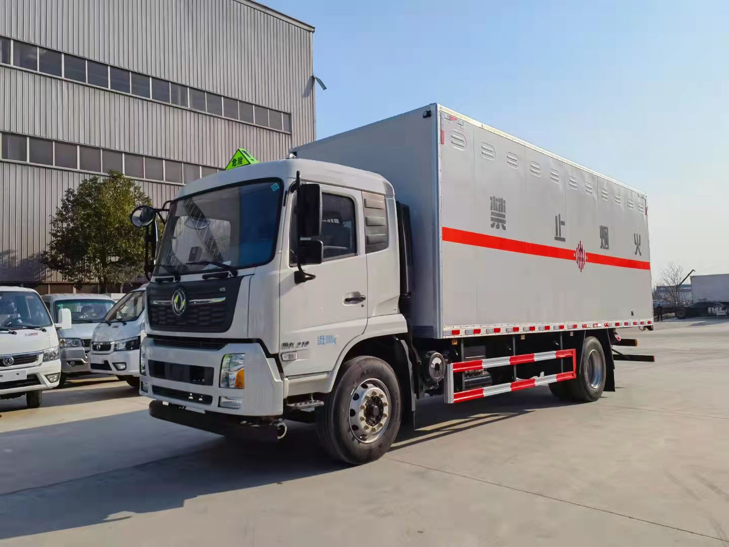 額載10噸廂長6.85米東風(fēng)天錦易燃固體廂式運輸車雙面夾層結(jié)構(gòu),外板采用免漆板有一次性沖壓成型的百葉窗,內(nèi)飾為導(dǎo)電性能良好的鋁板有透氣孔,復(fù)合加鉚合工藝,內(nèi)襯為矩形管骨架牢靠穩(wěn)定,骨架內(nèi)部填充為透氣防潮阻燃材料。廂體外部四周鋁合金型材包邊。鋪靜電膠皮,隨車配有靜電帶,滅火器,危險品三角頂燈。整車國標(biāo)反光標(biāo)示及警告標(biāo)志。尾部可選裝液壓升降尾板,卸貨方便。