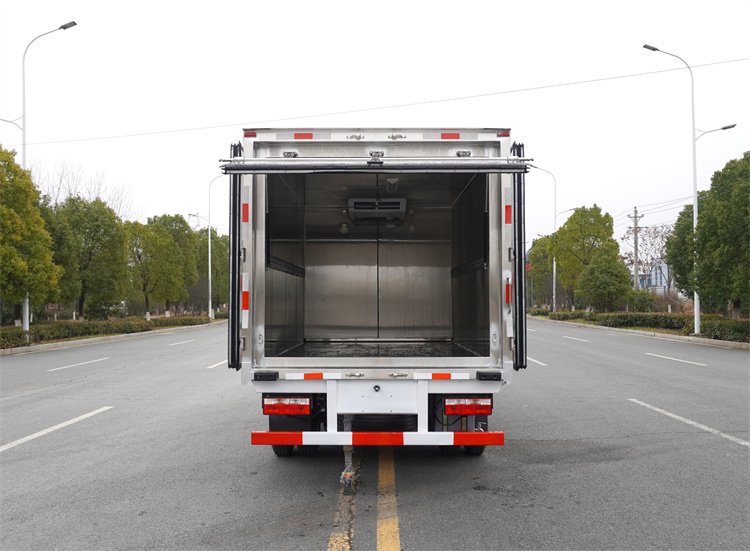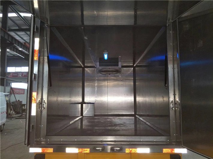 東風多利卡國六玉柴140馬力醫療廢物轉運車箱體是保溫箱內加裝不銹鋼,紫外線殺毒,噴霧消毒,廢液收集。新工藝保溫箱采用斷橋隔熱設計,降低導熱率;榫卯合箱技術,整體框架結構,牢固耐用;全密封的合箱膠保溫效果更持久。