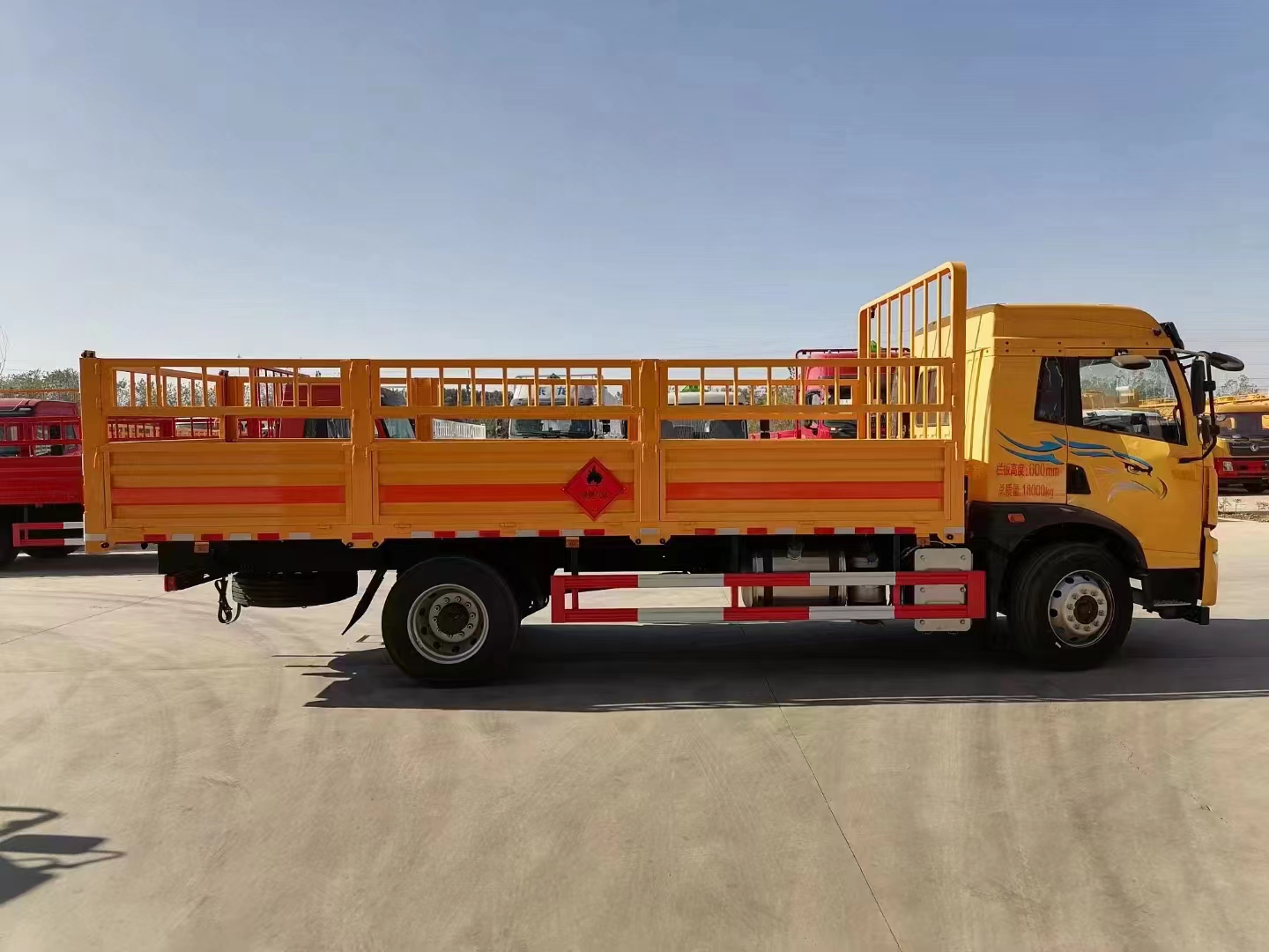 解放龍V國(guó)六6米7黃色氣瓶車箱體采用的是可拆卸式倉(cāng)欄式結(jié)構(gòu),車廂欄板高度600mm,帶上花欄接近1.2米,底板4mm鋪設(shè)靜電膠皮,尾部可帶尾板整車不超重,該車支持定制,裝載噸位可達(dá)10噸。該車可定制黃色、紅色、藍(lán)色,客戶可根據(jù)自身需求進(jìn)行選擇。以下是紅色車輛實(shí)拍圖片: