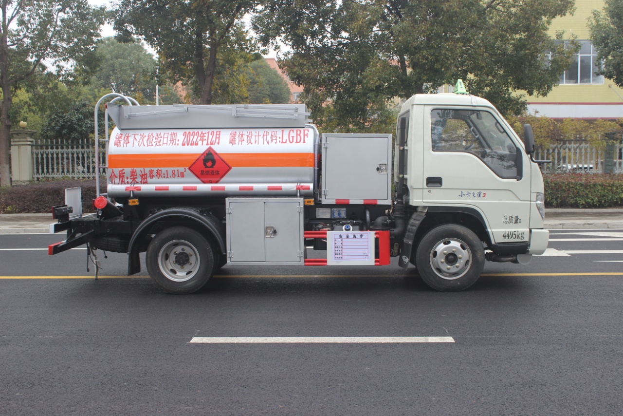 福田小卡國(guó)六藍(lán)牌加油車整車外形尺寸:5430X1960X2200mm,罐體尺寸:2400X1250X930mm,行駛證額載1.505噸,采用的是福田時(shí)代小卡之星3 BJ1045V9JB5-54底盤 ,2850mm軸距,全柴115馬力發(fā)動(dòng)機(jī),5檔變速箱,6.50鋼絲胎,斷氣剎,動(dòng)轉(zhuǎn),ABS,雙預(yù)警。公告容積1.81立方(實(shí)際約2.3立方),介質(zhì):柴油、汽油,山東齒輪泵,配備一套全歐標(biāo)系統(tǒng),預(yù)留大流量加油機(jī)位置及接口?蛻艨筛鶕(jù)自身需求選擇不同的加油機(jī)。