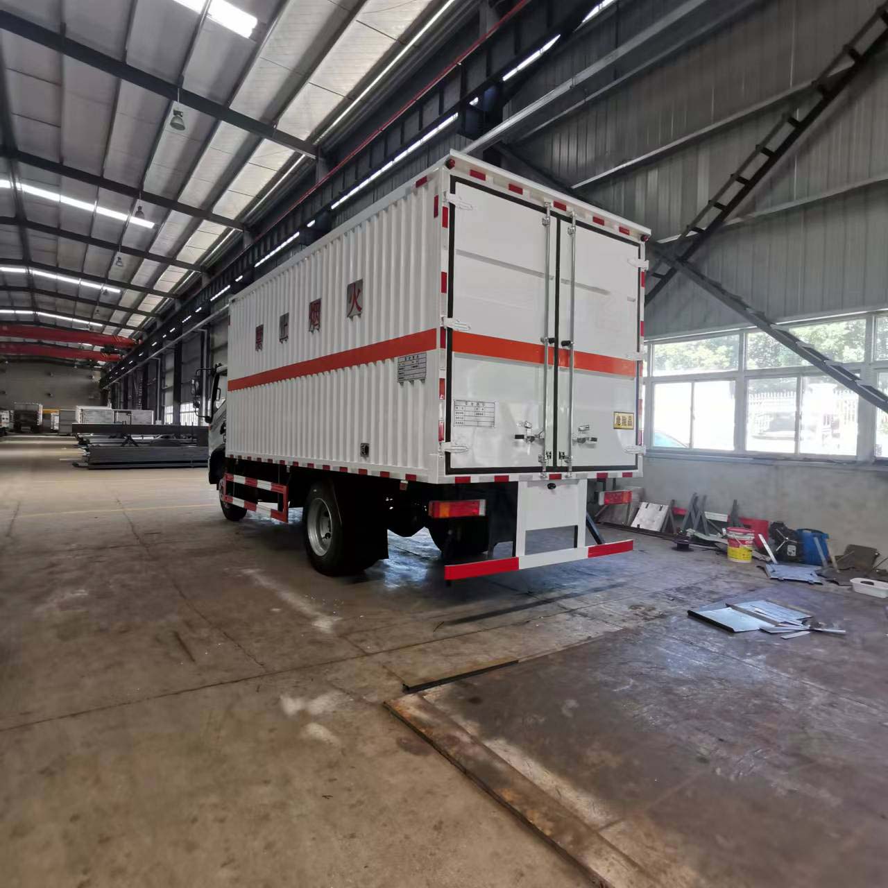 豪華的配置,需要重點(diǎn)提到的是該車(chē)采用的是氣囊減震座椅,司機(jī)長(zhǎng)途駕駛少去了疲倦,更安全進(jìn)行駕駛。貨箱尺寸:5150*2300*2300mm,箱體容積可達(dá)27個(gè)方。瓦楞板車(chē)身結(jié)構(gòu)運(yùn)輸貨物更扎實(shí)。廂體外部四周鋁合金型材包邊,底板和車(chē)廂前下部鋪橡膠皮,后門(mén)雙開(kāi),可選開(kāi)側(cè)門(mén),內(nèi)部裝固定貨物的臥環(huán)或護(hù)板,安裝煙霧報(bào)警器、防盜感應(yīng)器。車(chē)身附件靜電接地帶、滅火器、防火罩、危險(xiǎn)品三角燈、橙色反光帶、反光板、菱形標(biāo)志牌、危險(xiǎn)品牌、安全告示。
