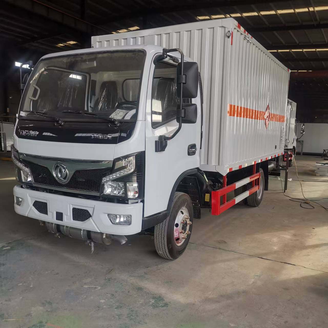 東風福瑞卡國六藍牌瓦楞板危險品車采用的是專用危險品車底盤,云內126馬力發動機,帶中控鎖、電動門窗、原廠空調,該車箱體采用的是瓦楞板工藝,外板采用冷軋板折彎而成,廂體兩側防雨通風孔。底板鋪防靜電膠皮,廂體右邊中部選裝側門。內部兩側裝臥環,噴禁止煙火字樣。箱體里面為了方便,客戶采用的是全鋪靜電膠皮,在膠皮以上有卡槽。方便客戶固定貨物。帶煙霧報jing器,防盜報jing器。箱體帶上裝工具包括靜電帶,滅火器,防火帽,三角頂燈。整車國標反光標示及警告標志。