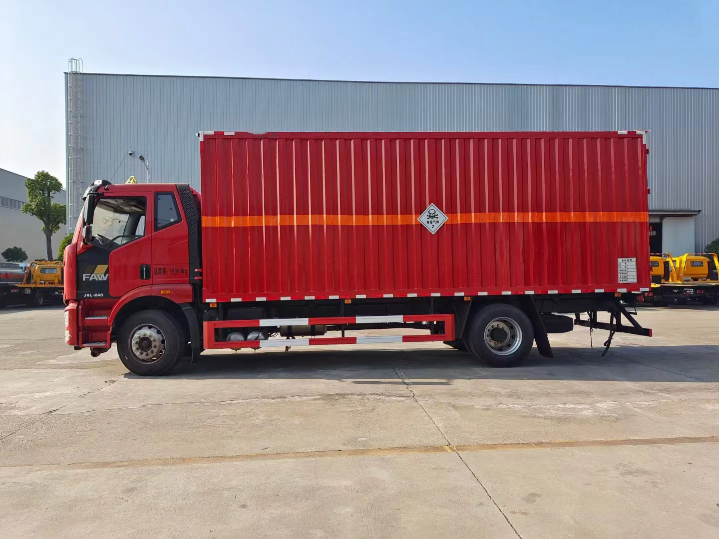選擇解放J6L國六毒性氣體廂式運輸車采用的是6缸240馬力發動機,品牌變速箱,275輪胎車輛使用承載力更強。單DIN北斗兼容車載系統、電源總開關控制開關。大柴CA6DH1-24E61(EGR+DOC+DPF+SCR氣驅、發動機制動),變速箱CA8TAX090F變速器(法蘭輸出取力器),車橋ф378沖焊橋(進口ABS、1878輪距),速比4.875,275/80R22.5型18層級無內胎,237×75×6.5,自動空調、前下防護裝置、VOSS管路及接頭、300L鋁油箱、電子手油門、一體式金屬寬體保險杠、電動液壓舉升、限速79km/h、排氣火花熄滅器、整車配備靜電拖地帶1根、駕駛室帶2kg干粉滅火器1個、排氣尾管及消聲器前置、前盤后楔式制動器、懸架3/-(4氣囊、電控ECAS)、后懸2300mm、安全帶佩戴提醒、制動器襯片更換報警、爆胎應急安全裝置、U型后處理、EBS(電控制動系統)、ESC(電子穩定性控制)、單胎帶TPMS(胎壓監測)、鋁貯氣筒、LDW(車道偏離報警)、FCW(前碰預警)、T-box1.5、排氣節流閥。軸距:4700mm。