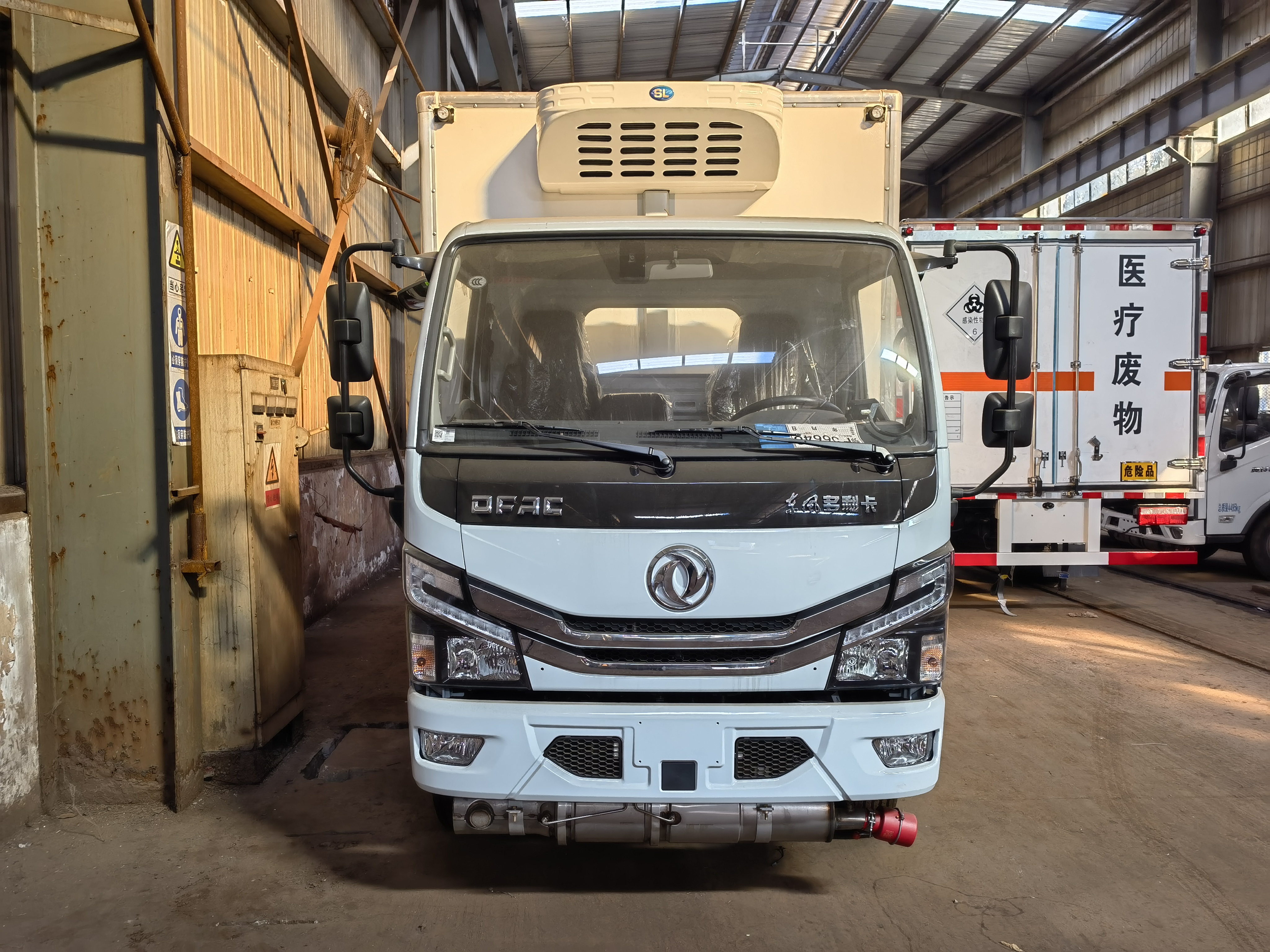 東風(fēng)帶液壓尾板藍(lán)牌醫(yī)療廢物轉(zhuǎn)運(yùn)車(chē)采用的是東風(fēng)多利卡原廠(chǎng)危險(xiǎn)品車(chē)底盤(pán),全柴115馬力發(fā)動(dòng)機(jī),4噸后橋,帶中控鎖、電動(dòng)門(mén)窗,為危險(xiǎn)品車(chē)標(biāo)配該車(chē)帶有行車(chē)記錄儀,配置有車(chē)道偏離和防碰撞預(yù)警。根據(jù)醫(yī)療廢物轉(zhuǎn)運(yùn)車(chē)要求,該車(chē)設(shè)置有前開(kāi)側(cè)門(mén)、紫外線(xiàn)消毒燈、卡槽,內(nèi)飾有不銹鋼。尾部帶門(mén)中門(mén),密封效果更好。為了方便上下卸貨,該車(chē)尾部帶有液壓尾板,整車(chē)不影響尺寸。