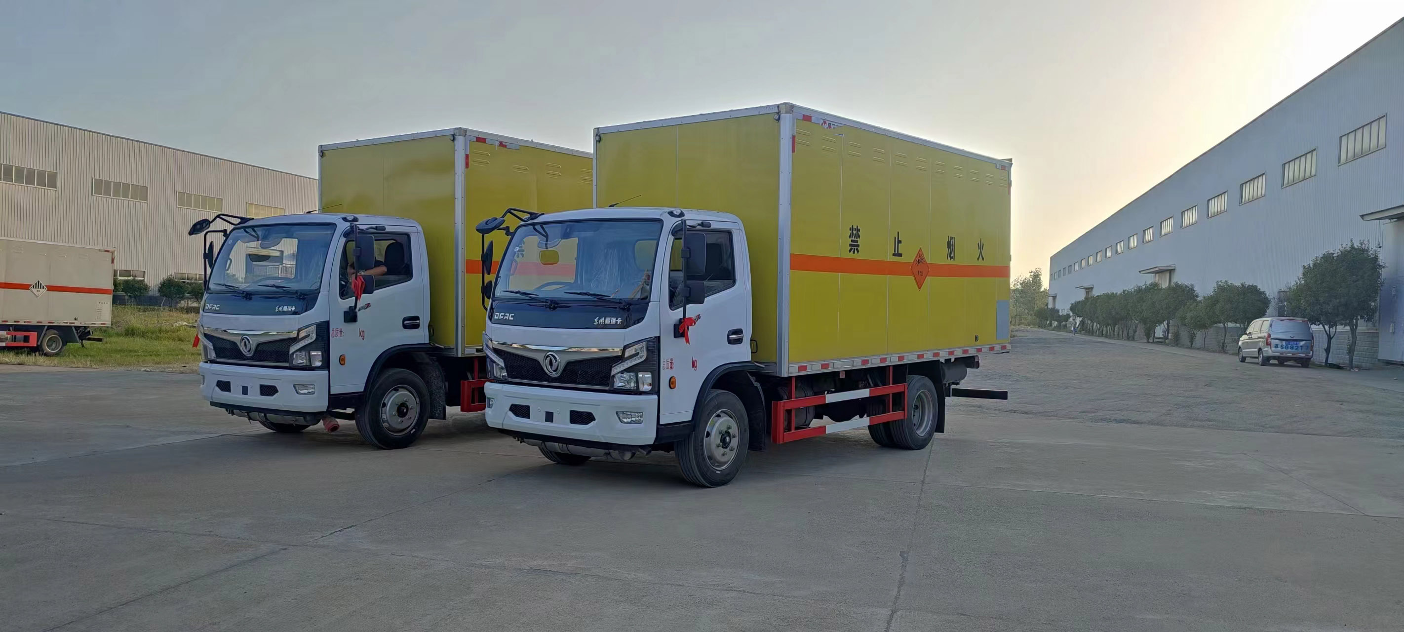 東風5噸爆破器材運輸車采用的是專用危險品車底盤,云內150馬力發動機,國六排放標準,該車后橋承載是5噸,拉5噸危險品承重沒有任何問題。箱體采用的是復合板箱體,側門可選擇單開側門或者雙開側門,尾部可加裝液壓尾板,整車不超重。