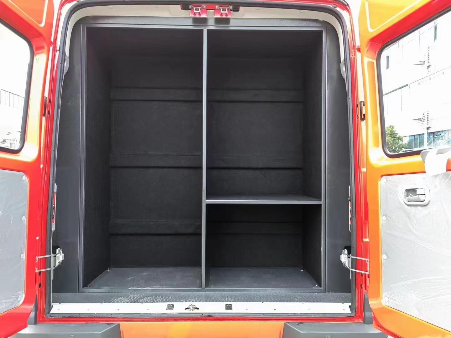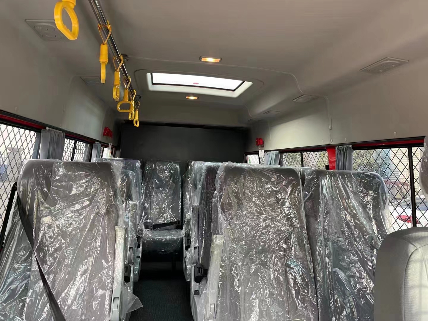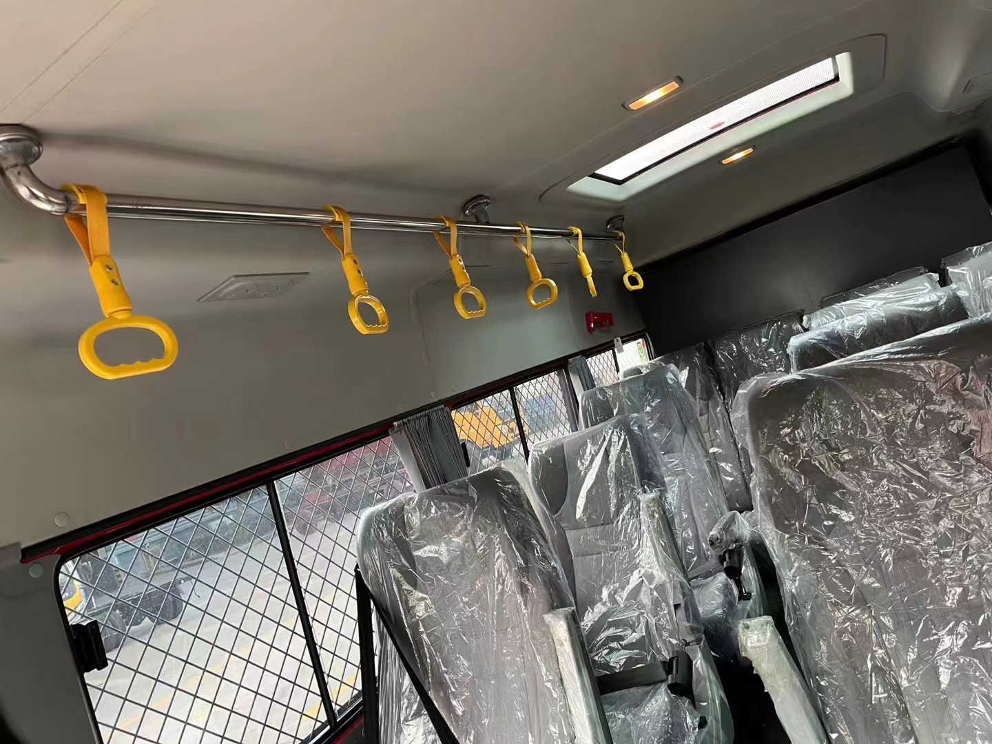 依維柯10-14座國六運兵車采用的是得意駕駛室,130馬力發動機動力足。內飾帶專用的座椅,固定的扶手!帶專用的頂置空調,應急警燈,采用的是連桿式倒車鏡,帶推拉窗戶。帶手動式外擺門、儲物邊箱。依維柯10-14座國六運兵車采用的五檔手動變速、也可選四輪驅動(分高速四驅、低速四驅)轉向助力。前盤后轂式剎車、非承載式車身、暖風、車頂行李架、后爬梯、尾門踏板、車身噴涂“森林消防”字樣、車輛前門粘貼防火標識、配備LED全紅警燈、警報、宣傳擴音器、室內獨立式靠背座椅、配備獨立座椅安全帶、勇士儀表臺、USB 插孔收錄機、鋁合金輪轂、車身為森林防火統一制式樣色“橘紅”。