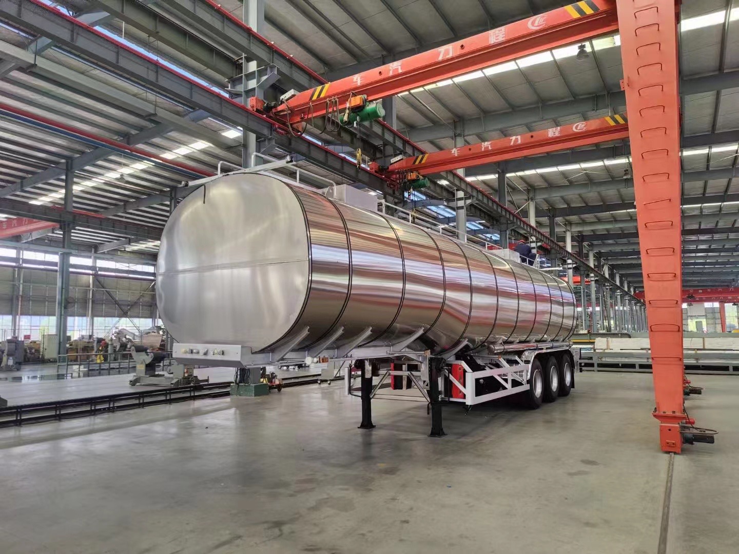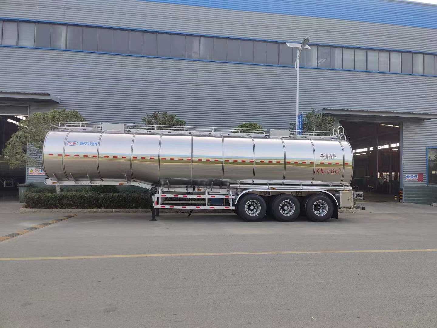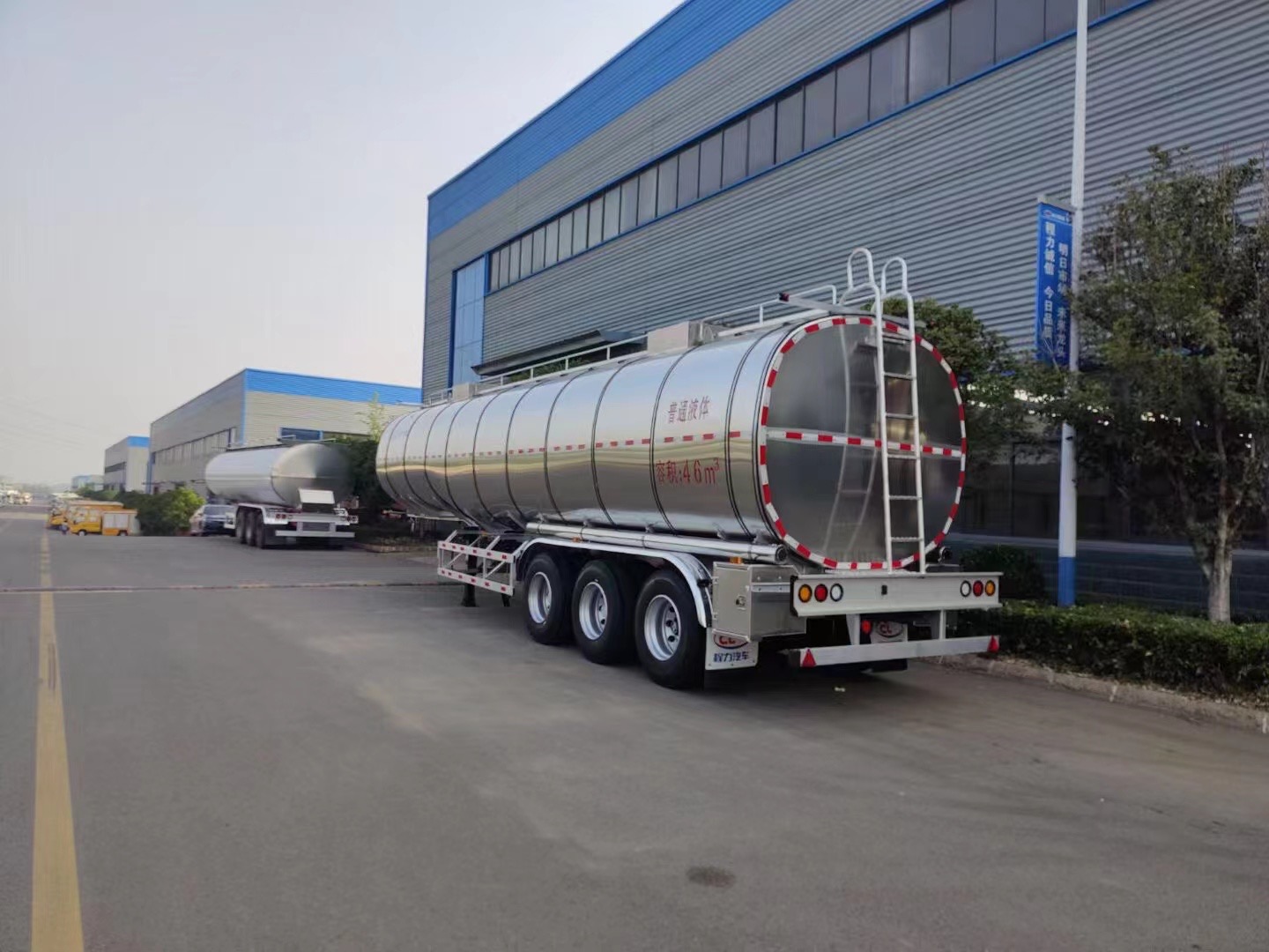 46方鋁合金普通液體運輸半掛車額載噸位可達32.75噸,軸距6200+1310+1310mm,該車比同類車型輕,優勢更大,讓您拉貨更多!
