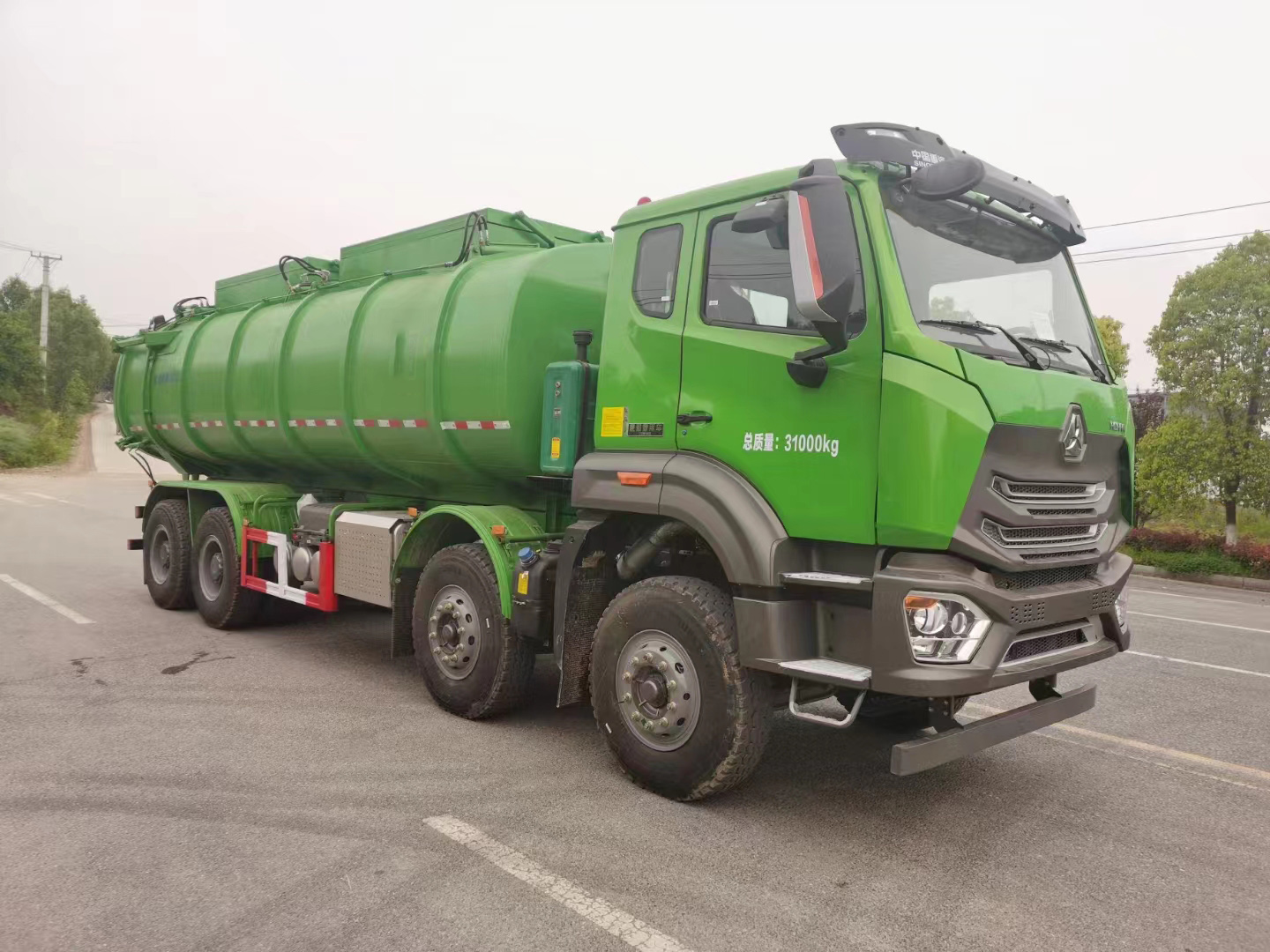 重汽豪瀚四軸廢污泥油泥運輸車嚴格按照公告罐體尺寸制作,罐體外部焊槽鋼窟加強。國產Φ180前置油缸,液壓油箱前置,后門液壓整體式開啟(密封性好),頂部進料口壹個液壓整體式側開(尺寸4000×1200㎜ ),其它廠標。罐體實際容積約25立方米,嚴格按照公告罐體尺寸制作7400×2380×1700,筒體5㎜,前封頭6㎜漲型,材質錳板,罐體外部焊槽鋼窟加強。國產Φ180前置油缸,液壓油箱前置,后門液壓整體式開啟(密封性好),罐體內部加2道圓管支撐,頂部進料口選裝兩個液壓整體開啟或一個大罐口整體液壓開啟,開關安裝在駕駛后部,其它廠標。