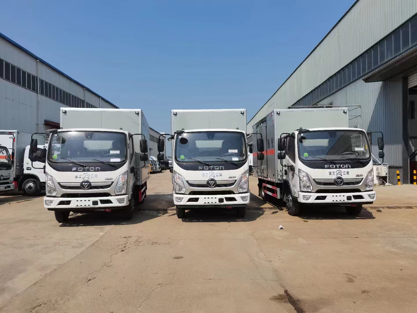 福田奧鈴爆破器材運輸車采用的是云內150馬力發動機,帶中控鎖、電動門窗、原廠空調,該車針對爆破運輸都采用的專用高箱體,配置有車道偏離和防碰撞預警,箱體帶可選烤漆板,箱體為雙層金屬結構,外板采用烤漆板帶百葉窗,內飾為導電性能良好的鋁平板有透氣孔,中間為矩形骨架結構內部填充防火阻燃材料,復合加鉚合工藝。廂體四周鋁合金包邊及包角。車廂底板上方鋪設防靜電膠皮,廂體內前臉50公分高鋪設防靜電膠皮。右側前開隔斷側門,整車尾部設置對開門,廂體內部兩側安裝捆綁貨物的臥環。廂體內部安裝煙霧報警器,門上安裝防盜報警感應器。