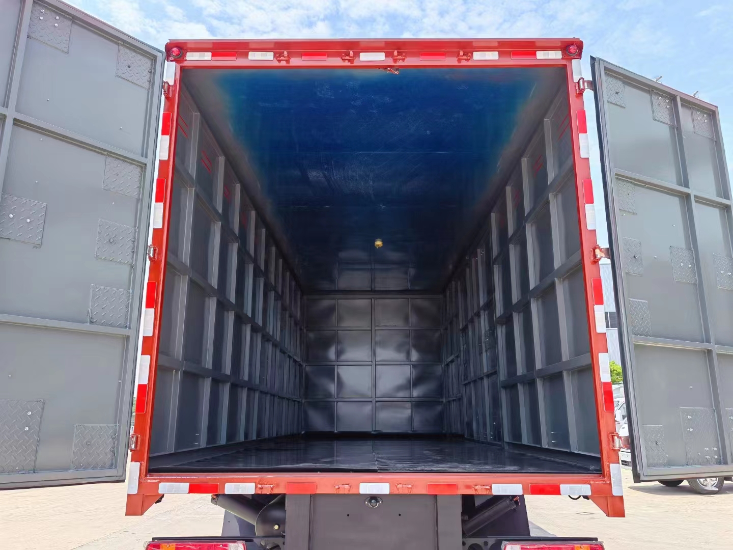 為了固定貨物,一般拉煙花爆竹、火工品禮炮花炮都需要專用的雙層箱體,外冷軋板內(nèi)鋁板,固定貨物的臥環(huán),不占空間;