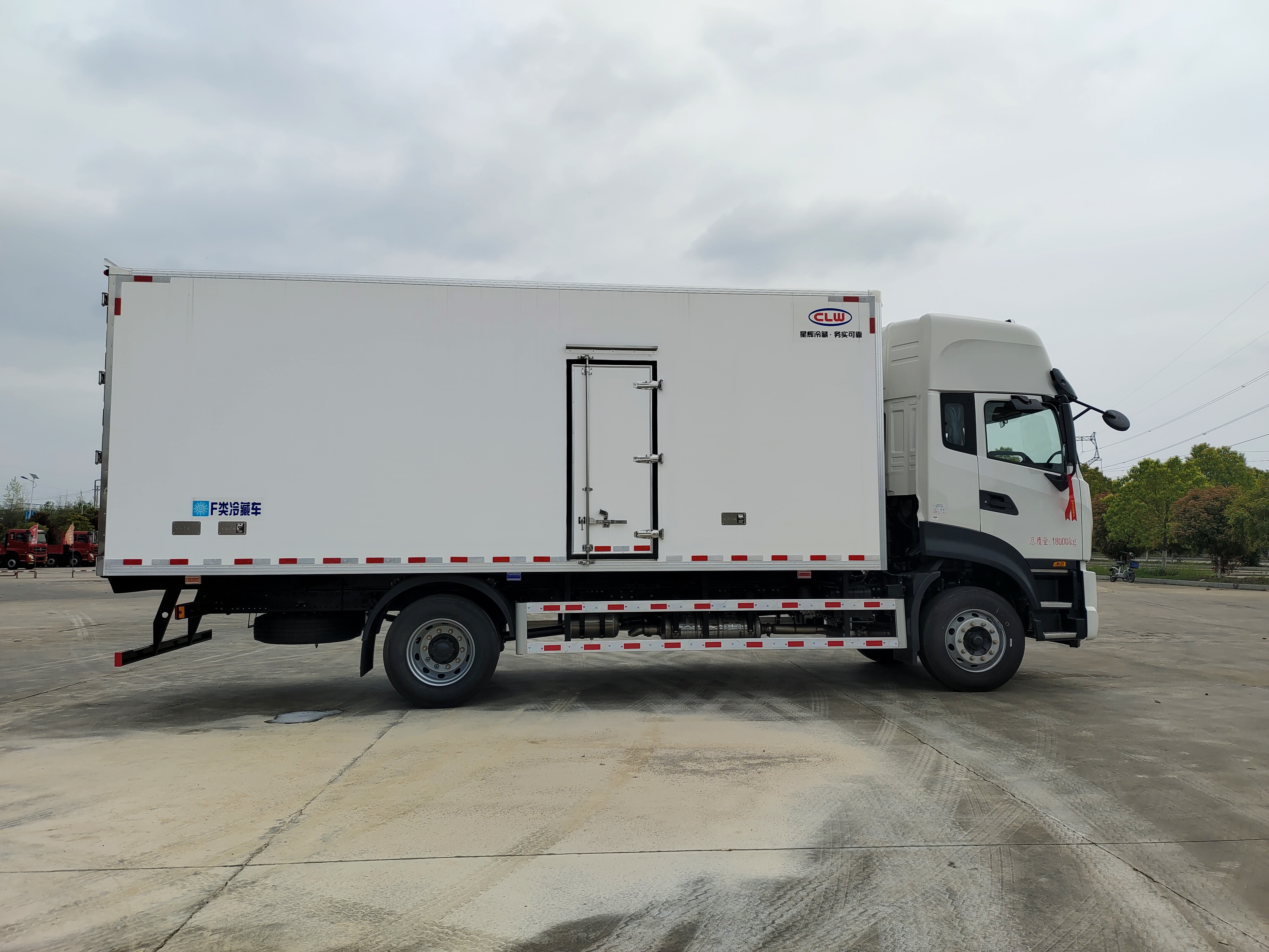根據(jù)運輸?shù)亩鄻有裕x擇的箱體也不一樣。該車?yán)洳剀嚥捎娩撃窘Y(jié)構(gòu),斷橋隔熱技術(shù),鍍鋅管骨架,內(nèi)外選用優(yōu)質(zhì)玻璃鋼(不吸光、隔熱性好、硬度強、抗氧化),中間填充8個厚XPS擠塑聚笨板;高強度粘合劑、正壓機熱壓成型(采用全自動打膠壓板機,打膠+壓板一氣呵成,打膠均勻,不易鼓包,出板迅速高效)。地板采用塑鋼花紋板,廂內(nèi)側(cè)面帶15厘米圍裙,箱體內(nèi)直角包邊,前部排水孔,門邊條采用迷宮式橡膠密封條,亮光不銹鋼門框。廂體周邊加厚鋁合金包邊,不銹鋼包角,不銹鋼門鎖鉸鏈,不銹鋼鎖件及合頁,廂體內(nèi)節(jié)能LED照明燈。