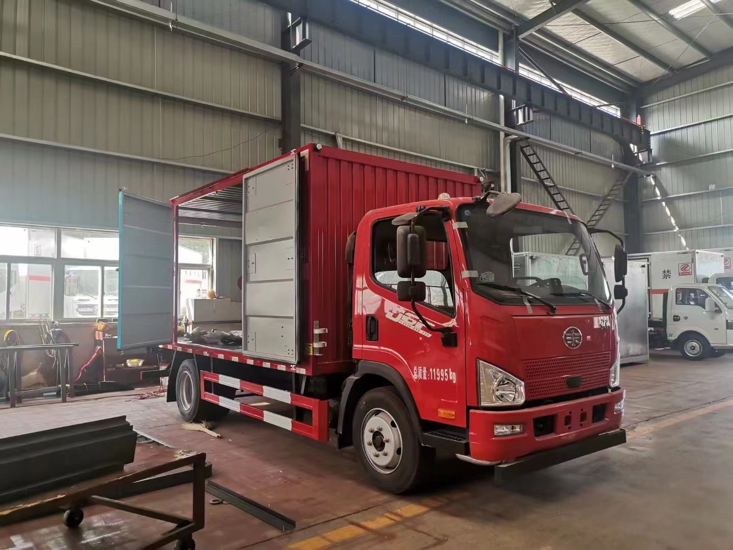紅色靚麗的解放一排半駕駛室雜項運輸車,可選解放J6F和解放虎V兩種駕駛室,發動機可選大柴180馬力或濰柴160馬力,陜齒6檔變速箱(也可以根據需求定制小八檔變速箱),箱內尺寸:5200*2400*2300mm(在目前情況下,中型排半車輛中可定制的規格較大的車型,比同類容積大2-3立方,裝貨更有優勢)。根據運輸雜類的習慣,該類車輛都要求車輛承載力好,耐磨損。。所以采用的是全新高溫烤漆工藝,讓車輛不容易生銹,加之收廢機油、廢電池等會有一定的腐蝕性,高溫烤漆不容易掉漆,車輛使用更方便快捷。