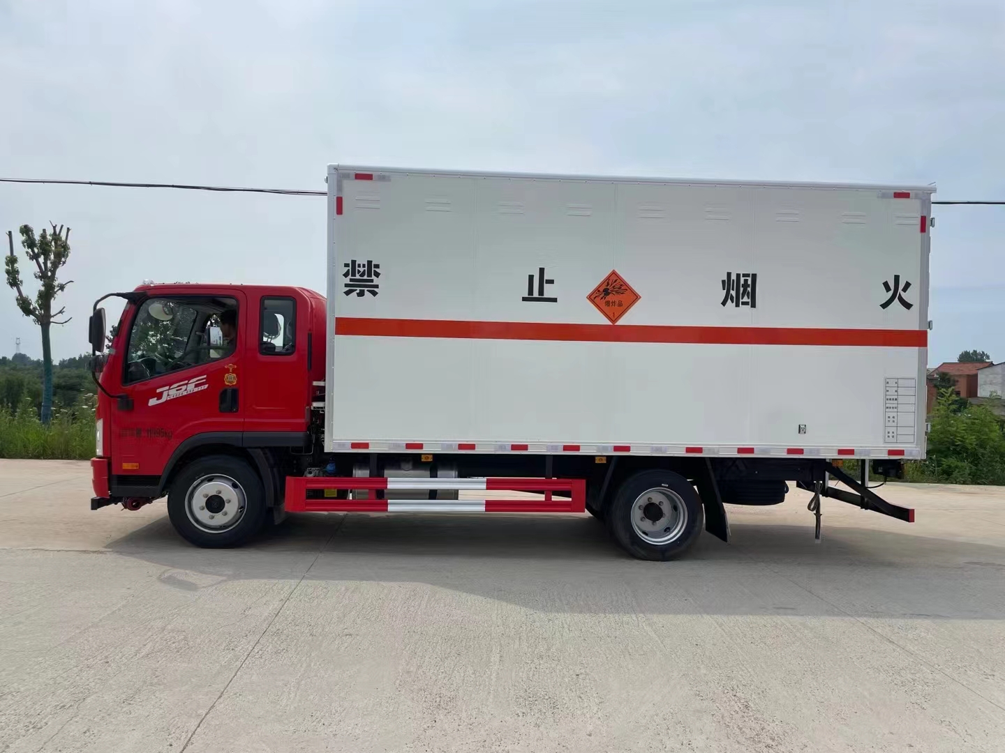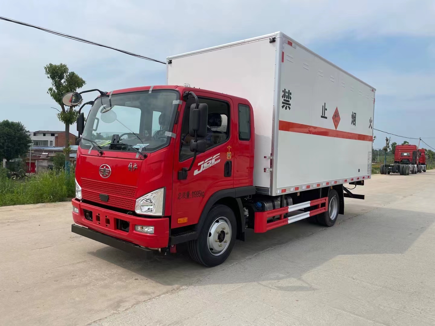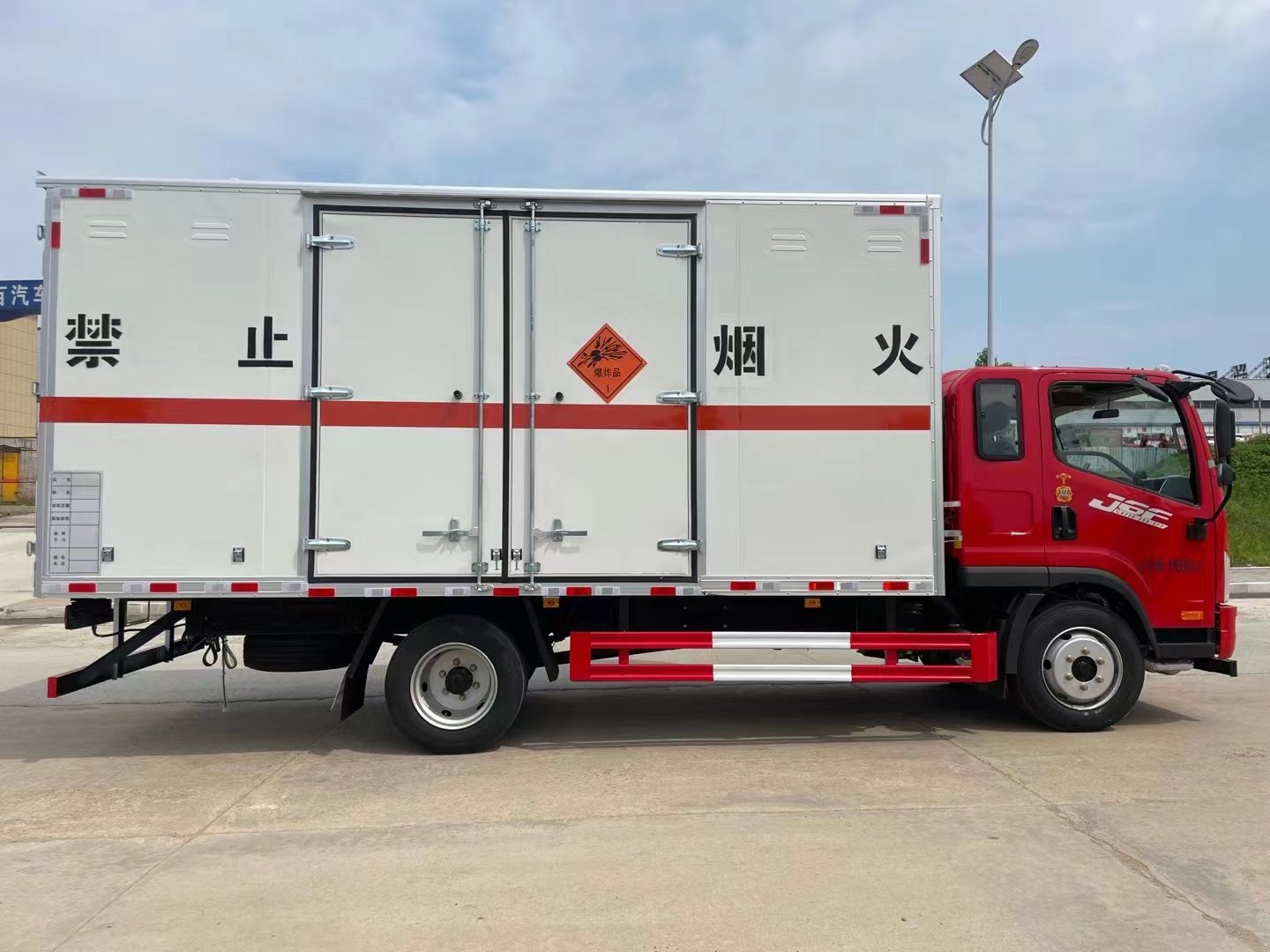 解放J6F排半5米2紅色車頭白色箱體危險品車采用的是經典駕駛室,寬敞3人座,時尚的中網給人眼前一亮的感覺,可選濰柴160馬力發動機或大柴180馬力,帶中控鎖、電動門窗、原廠空調,選擇該類車型的車主主要看中的是車的箱體,能夠滿足排半的情況下還可以做到廂長5米2,相比以往做4.78米的廂長多30公分,在同類車型中更有優勢。