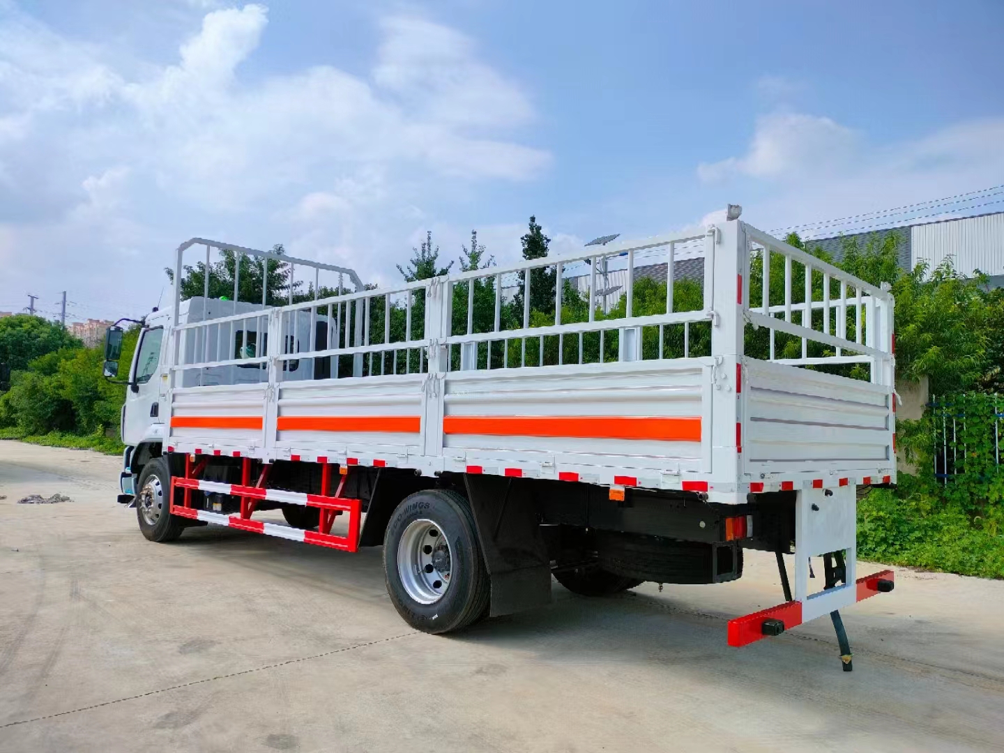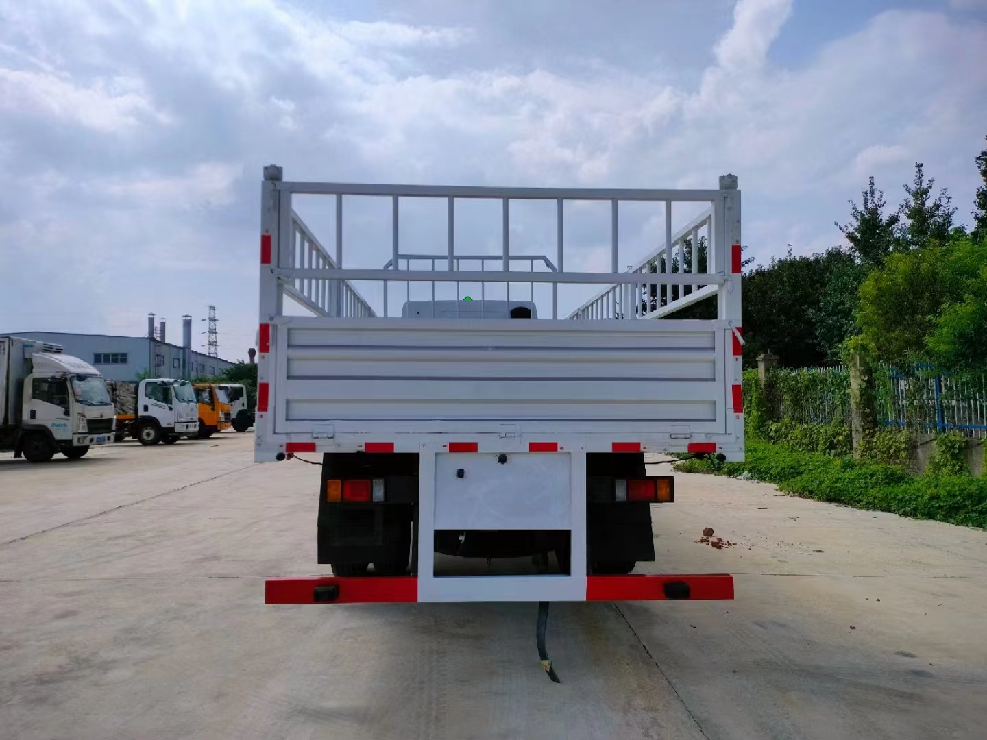 柳汽乘龍6.72米國六氣瓶車廂體尺寸:6720×2430×600mm。嚴格按照公告尺寸制作,底板采用5MM花紋板制作,帶可卸是高欄,配備滅火器,三角頂燈,靜電拖帶等,嚴格按照國家危險品法規(guī)進行“易燃氣體”標識粘貼。