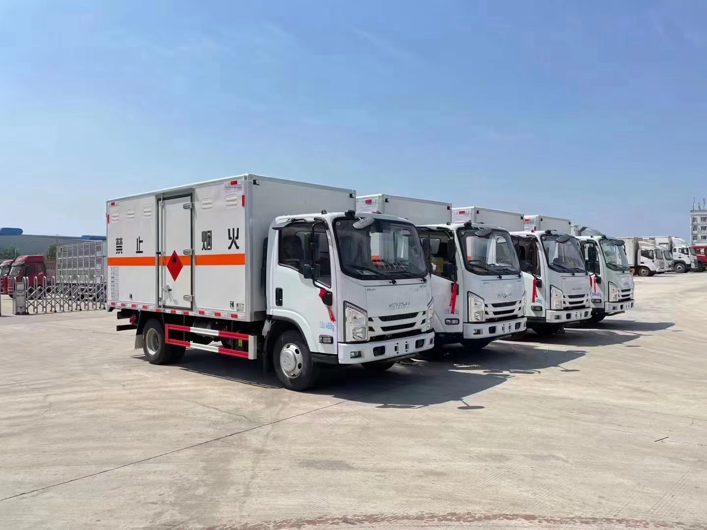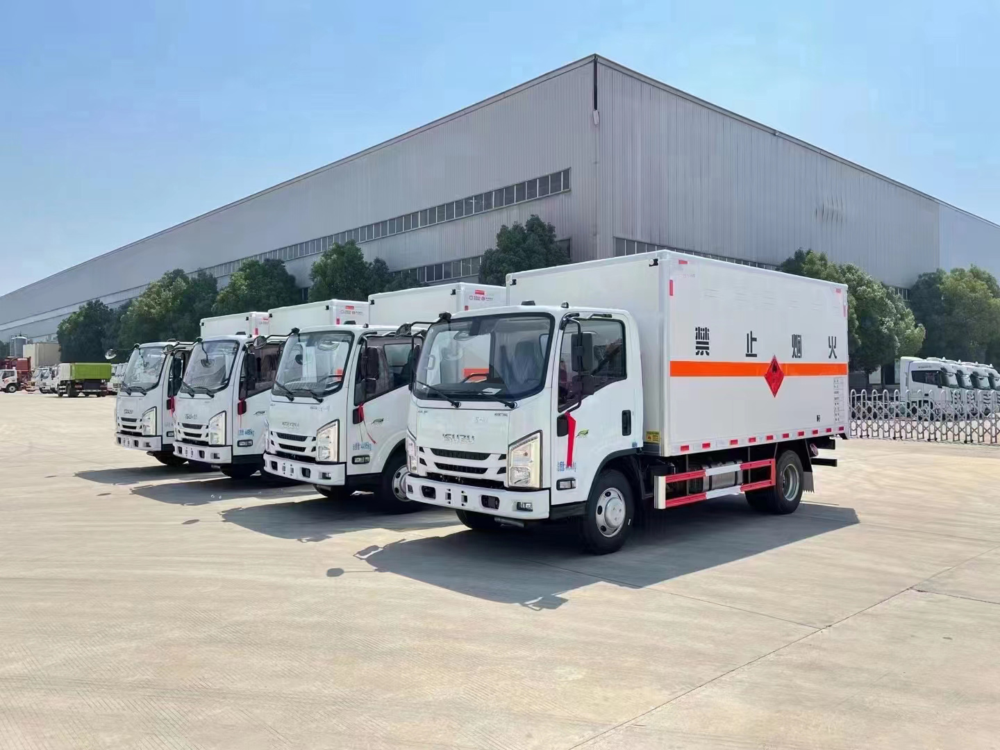 五十鈴黃牌國六爆破器材運輸車嚴格按照公告尺寸制作。外板采用烤漆板帶百葉窗,內飾為導電性能良好的鋁平板有透氣孔,矩形骨架結構內部填充防火阻燃材料,復合加鉚合工藝。廂體四周鋁合金包邊及包角,車廂底板3mm鋪設防靜電膠皮,廂體前臉50公分高鋪設防靜電膠皮。后部設置對開門,右側單開門,廂體內部兩側安裝捆綁貨物的臥環。廂體內部安裝煙霧報警器及防盜報警感應器。車廂一周粘貼橙色反光帶,箱體粘貼 菱形標志牌,安全告示牌,危險品牌,箱體安裝示廓燈(前白后紅),拖地靜電帶。