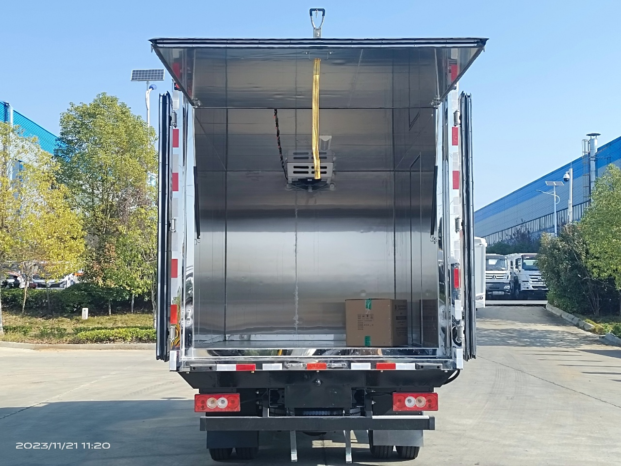 福田奧鈴國(guó)六醫(yī)療廢物轉(zhuǎn)運(yùn)車選用的是福田奧鈴危險(xiǎn)品專用底盤,國(guó)六排放標(biāo)準(zhǔn),廂體尺寸:4060*2100*2100mm,可選云內(nèi)150馬力發(fā)動(dòng)機(jī)或康明斯131馬力發(fā)動(dòng)機(jī),帶5檔變速箱,7.00鋼絲胎,帶空調(diào),方向助力,中控鎖,電動(dòng)車窗,排氣管前置,ABS限速,車道偏離預(yù)警,前碰撞預(yù)警。根據(jù)醫(yī)療廢物轉(zhuǎn)運(yùn)車要求,該車外板采用玻璃鋼,中間填充隔熱阻燃材料,廂內(nèi)全部為不銹鋼內(nèi)板,尾部帶不銹鋼門內(nèi)門(選裝側(cè)門),帶-5度冷藏機(jī)組。上裝工具包括靜電帶,滅火器,防火帽,三角頂燈。國(guó)標(biāo)反光標(biāo)示及警告標(biāo)志。匹配有不銹鋼五金件,紫外線殺毒燈,噴霧消毒壺和噴淋裝置。