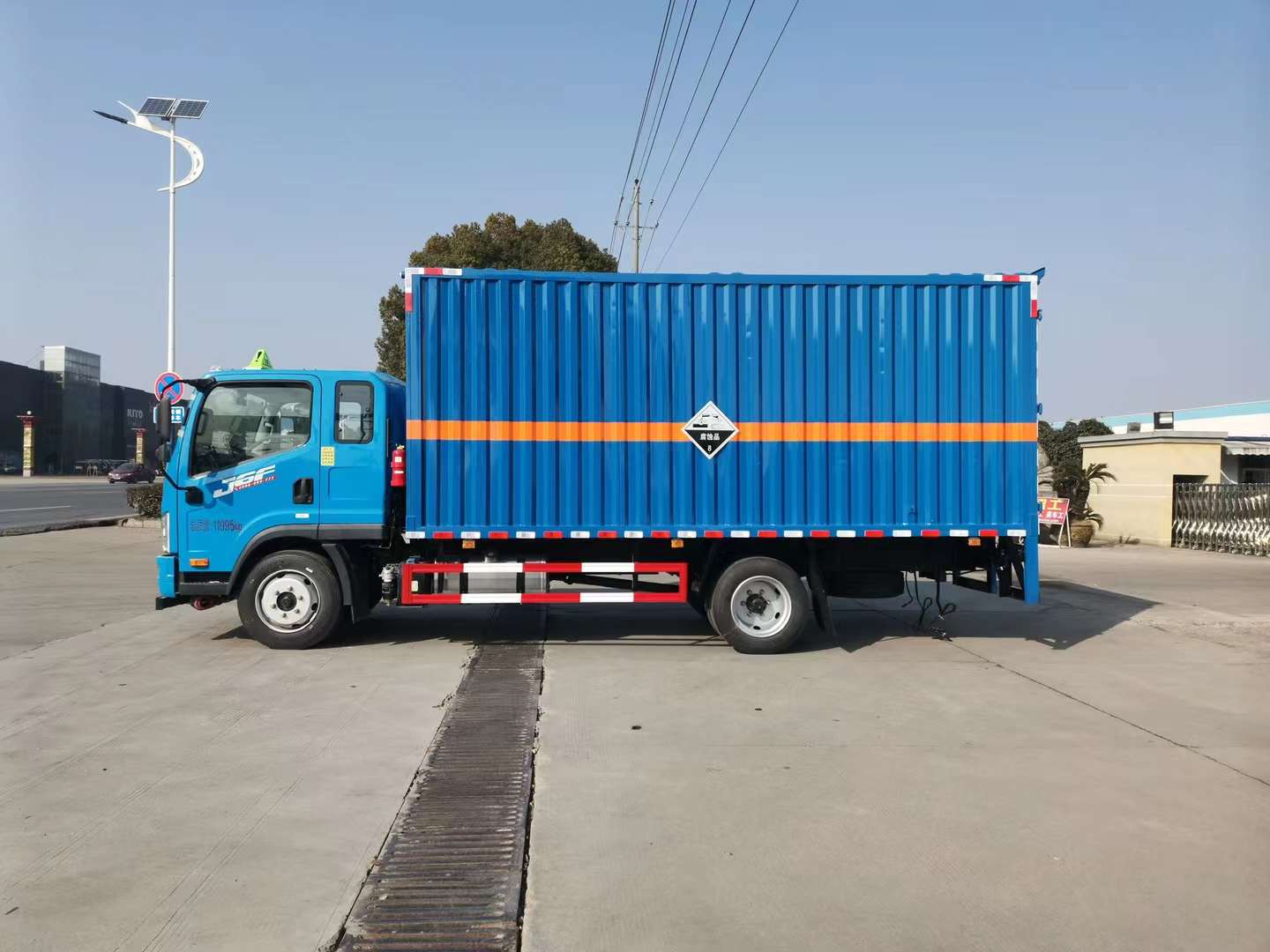 解放J6F國六瓦楞板排半危險品車選用的是危化品專用底盤,可選濰柴160馬力和大柴180馬力發動機,該車匹配的是中控鎖、電動門窗、原廠空調,寬體3人座駕駛室,定制的是整車藍色,顏色鮮艷奪目。匹配我司用專用機械折彎而成的瓦楞板,內部鋪設不銹鋼放腐蝕,且比復合雙層阻燃板成本更低。