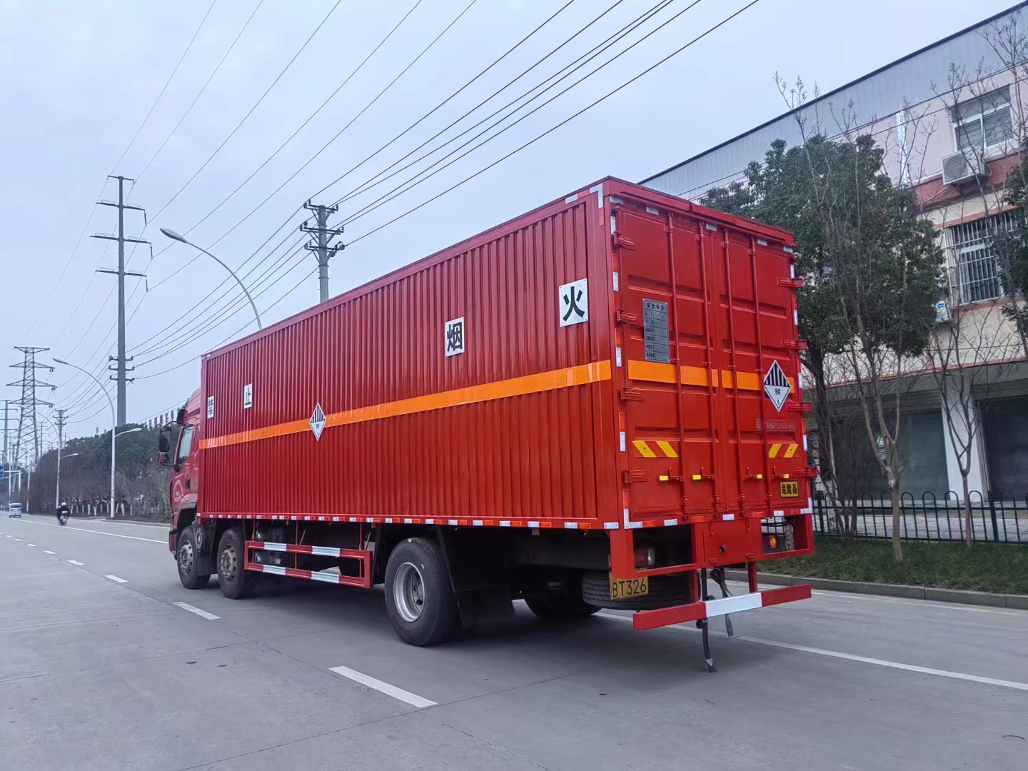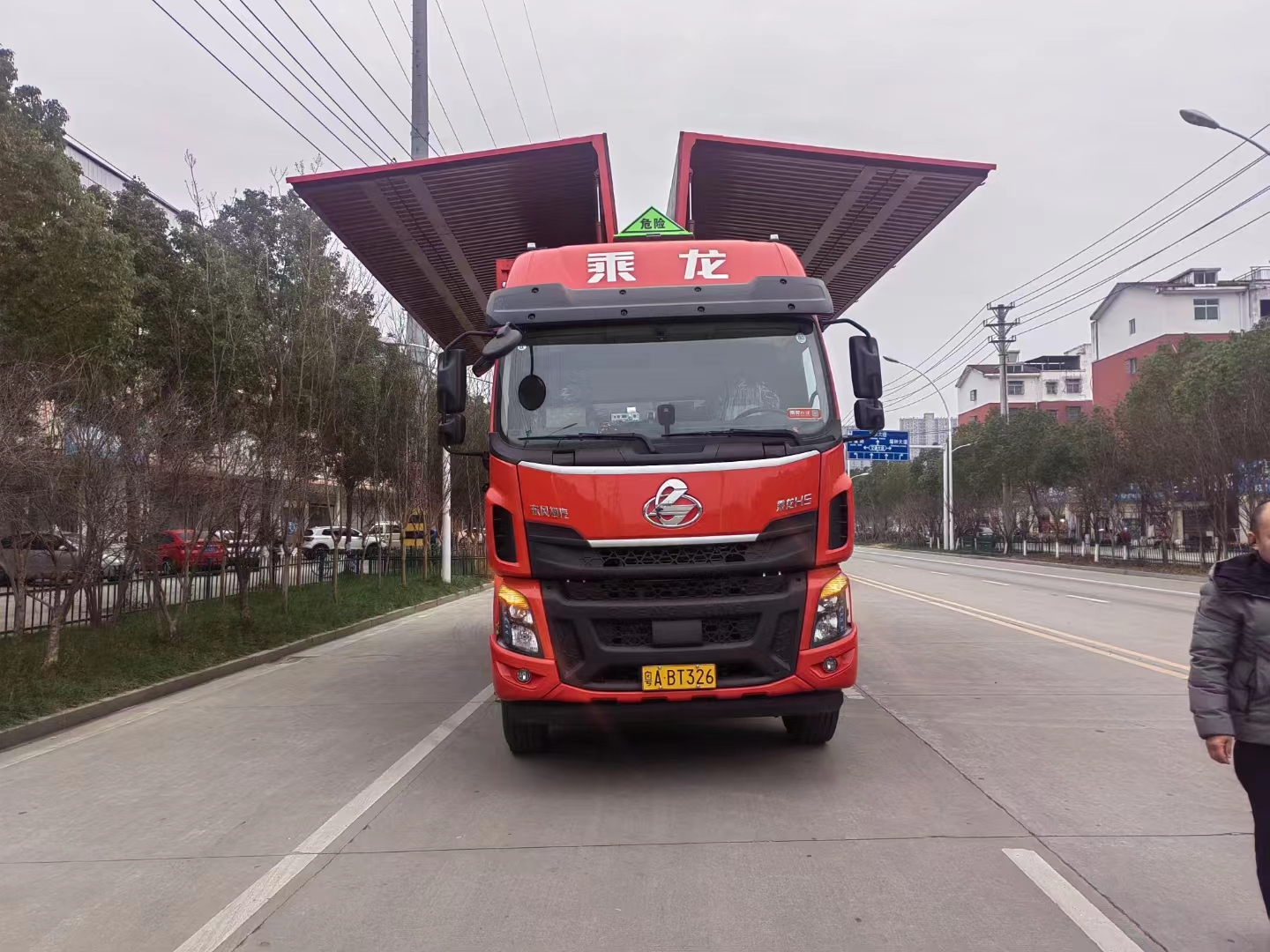 柳汽9.6米國六雜項帶雙飛翼危險品車采用的是H5駕駛室,軸距2050+5350mm,選用的是YCS06270-60發(fā)動機,8JS105TA變速箱,Φ430離合,選用的是2*5.5T盤式前橋,后橋440/4.875/加寬制動器,板簧3/3/-,282(8)車架,400L(鋁)油箱,國產(chǎn)方向機,1200輪胎,前機械后氣囊駕駛室懸置、電動液壓翻轉(zhuǎn)、自動空調(diào)。選用的是帶定速巡航系統(tǒng)、國產(chǎn)閥、ABS、車載終端(行駛記錄儀+兼容北斗GPS)、外部遮陽罩、鋁合金貯氣筒、中控鎖、自動調(diào)整臂、多態(tài)開關(guān)、真皮多功能方向盤、前置排氣管、前輪防爆胎應(yīng)急安全裝置、盤式前橋、排氣火花熄滅器、危險品運輸頂燈、ECU限速裝置(限速80km/h)、駕駛室電源總開關(guān)、TPMS、LDWS、FCW、T-BOX