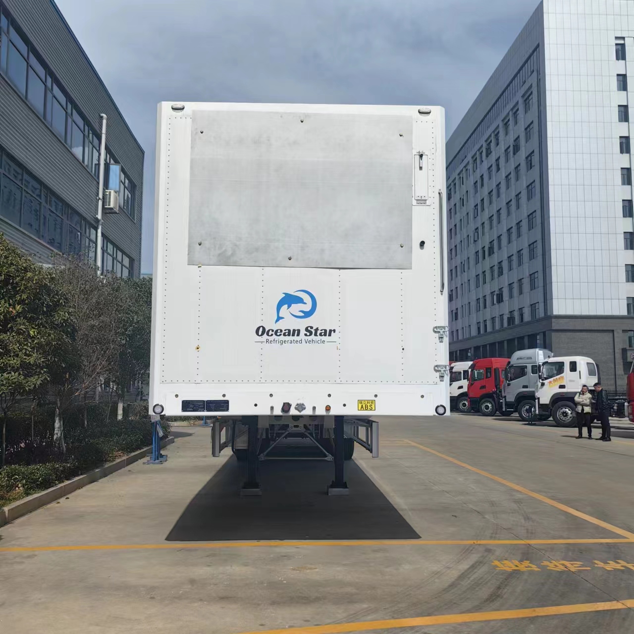 半掛出口冷藏車選用的是富華品牌的ABS,行走部分牽引銷可選裝90和50,成山12R22.5輪胎,采用的是輕量化鋼圈,帶緊急制動閥,配備鋁合金鋼圈,貨箱尺寸:12970*2440*2450mm,該車箱體采用的是外全鋁蒙皮,內熱縮板,帶聚氨酯發(fā)泡工藝,左右側板8公分厚,底板12公分厚,底板加厚通風槽,廂體內部頂板加裝通風布,前后通風器,四個頂燈,冷機護板,單側門,左右兩側30公分護板(圍裙),兩個排水孔,后門上車爬梯,大包邊,后門雙鎖桿,不銹鋼門框其他按半掛標準。