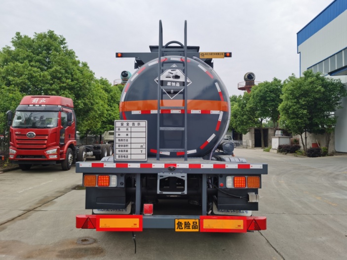 拉硫酸專(zhuān)用腐蝕品半掛車(chē)顏色可以多選,可選灰色防腐漆或者銀色等多種顏色,該車(chē)按照標(biāo)配貼反光條,貼反光帶,安全告示。介質(zhì):硫酸。想要拉硫酸不超重,又能滿足公告的,這一款車(chē)更合適,讓您用車(chē)更無(wú)憂!