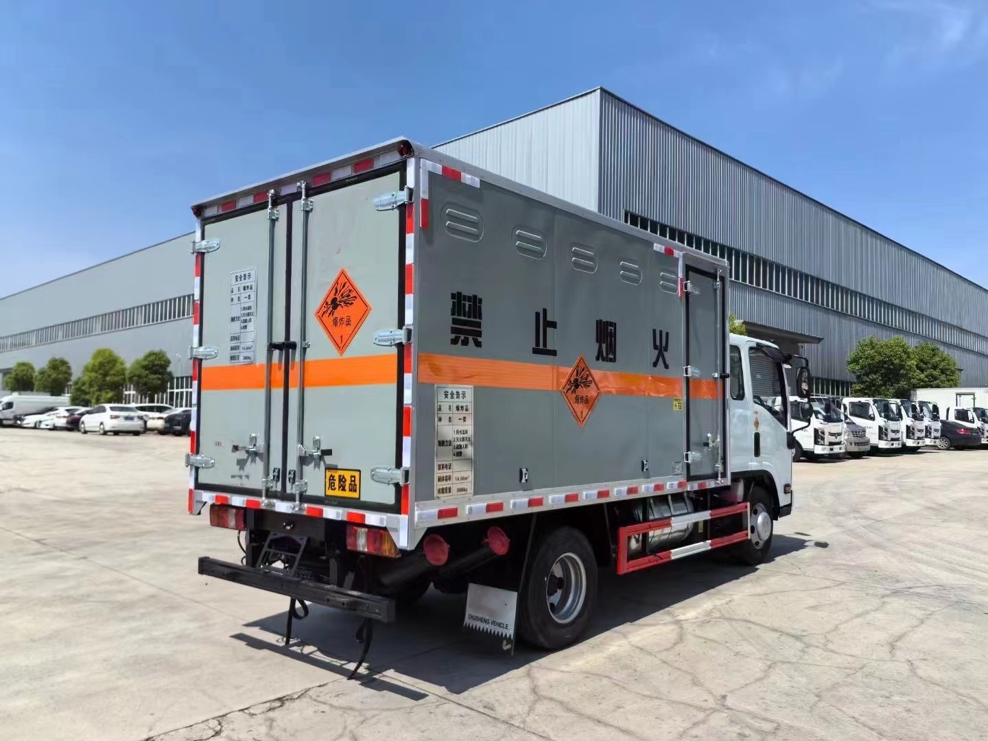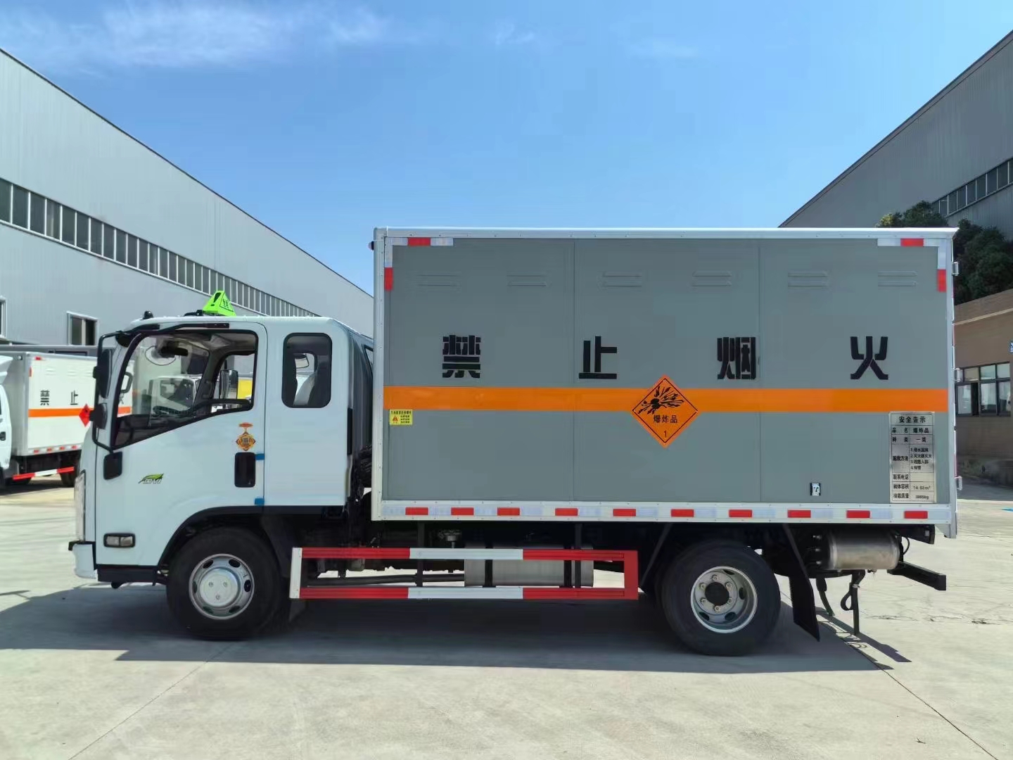 五十鈴排半國六爆破器材運輸車選用的是定制型駕駛室,灰色的箱體,看起來時尚美觀,整車看起來整齊劃一。該車尾部可加裝液壓尾板,支持分期,讓您用車更無憂!