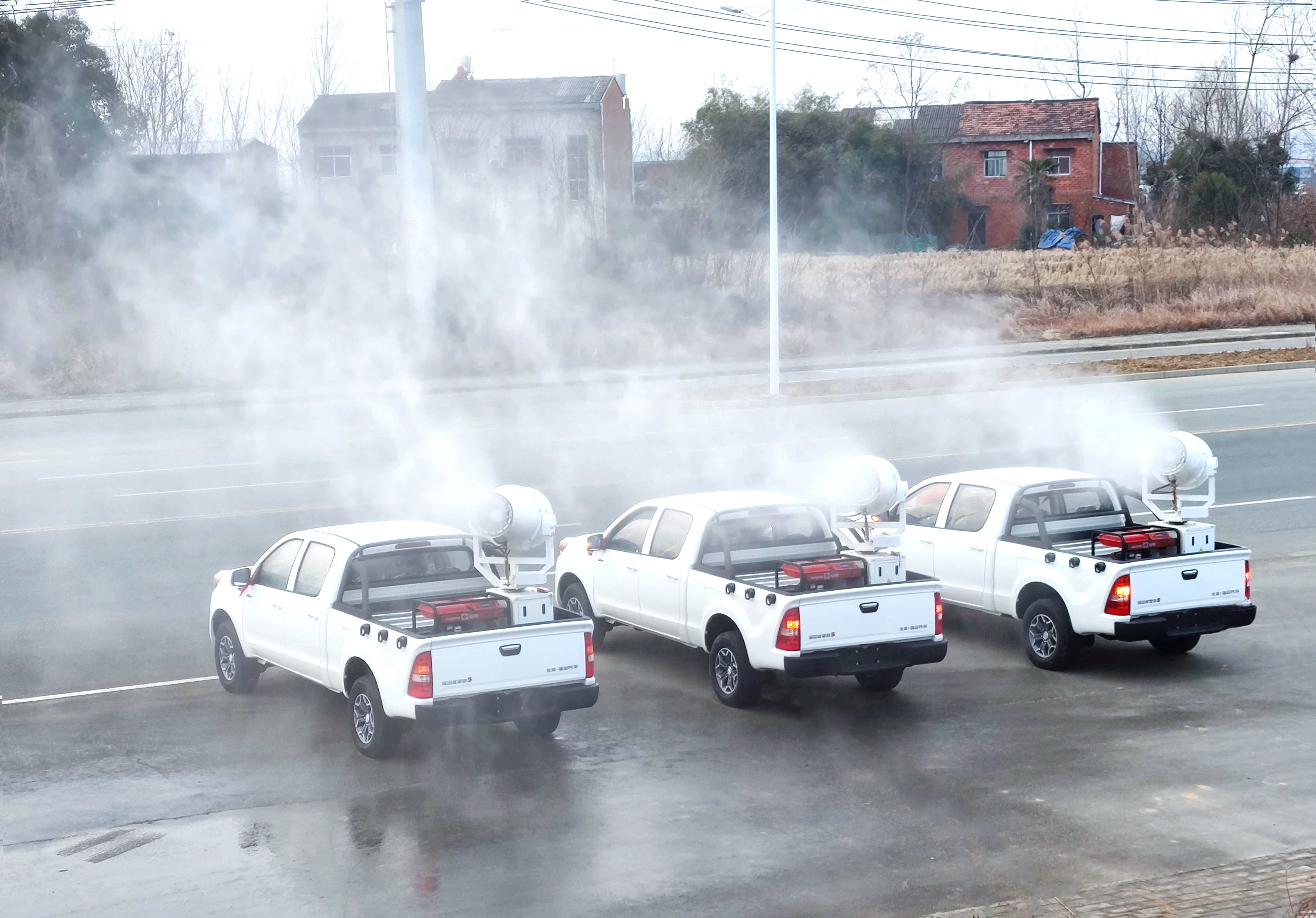 福田四驅皮卡國六消毒車選用的是專用四驅底盤,勝途5柴油兩驅長(平)廂,2.0T歐康163馬力120(kw),6檔手動變速箱,245/70R16輪胎,倒車雷達ABS+EBD,電動門窗/空調,中控鎖。上裝不銹鋼儲液罐,容積0.6方左右,柴油發電機組,噴霧機組,帶遙控操作。