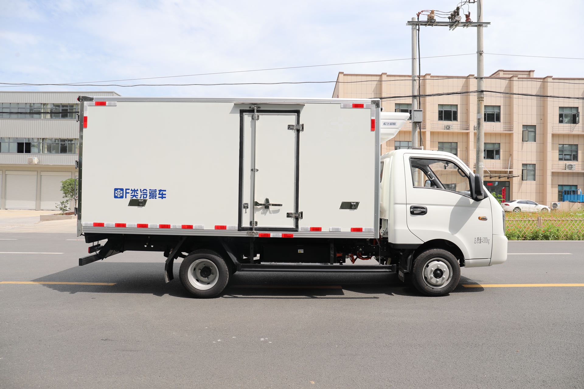 吉利3米8國六新能源冷藏車廂體容積10.4立方,整車外形尺寸:5995x1810(1950)x2730mm,車廂內部尺寸:3820x1650(1790)x1650mm。185R15LT 8PR輪胎。單排駕駛室、液晶儀表盤、電動空調、電動門窗、日間行車燈、車聯網、BCM功能(自動落鎖、內部照明延時功能、內部照明自動熄火功能、車門防盜報警)、ABS、T-BXO。該車外形輕巧看起來時尚大氣美觀,選用的是寧德時代磷酸鐵鋰電池,電池容量大。該車續航里程為180-220公里(實際續航)。定制的是永磁同步電機,選用的是液壓制動。