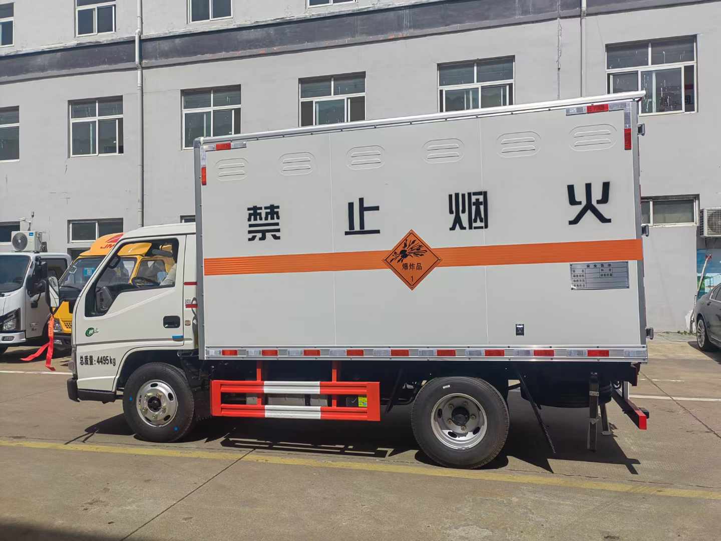 江鈴順達3米5國六爆破器材運輸車箱體選用的是防阻燃材料,側門可以多選,可定制左右開門形式。額載噸位可達4噸,承載力強,貨箱尺寸控制剛剛好,狹小路況也能進入,讓您輕松駕馭。重點是車輛穩定,性能齊全,讓您用車更無憂!