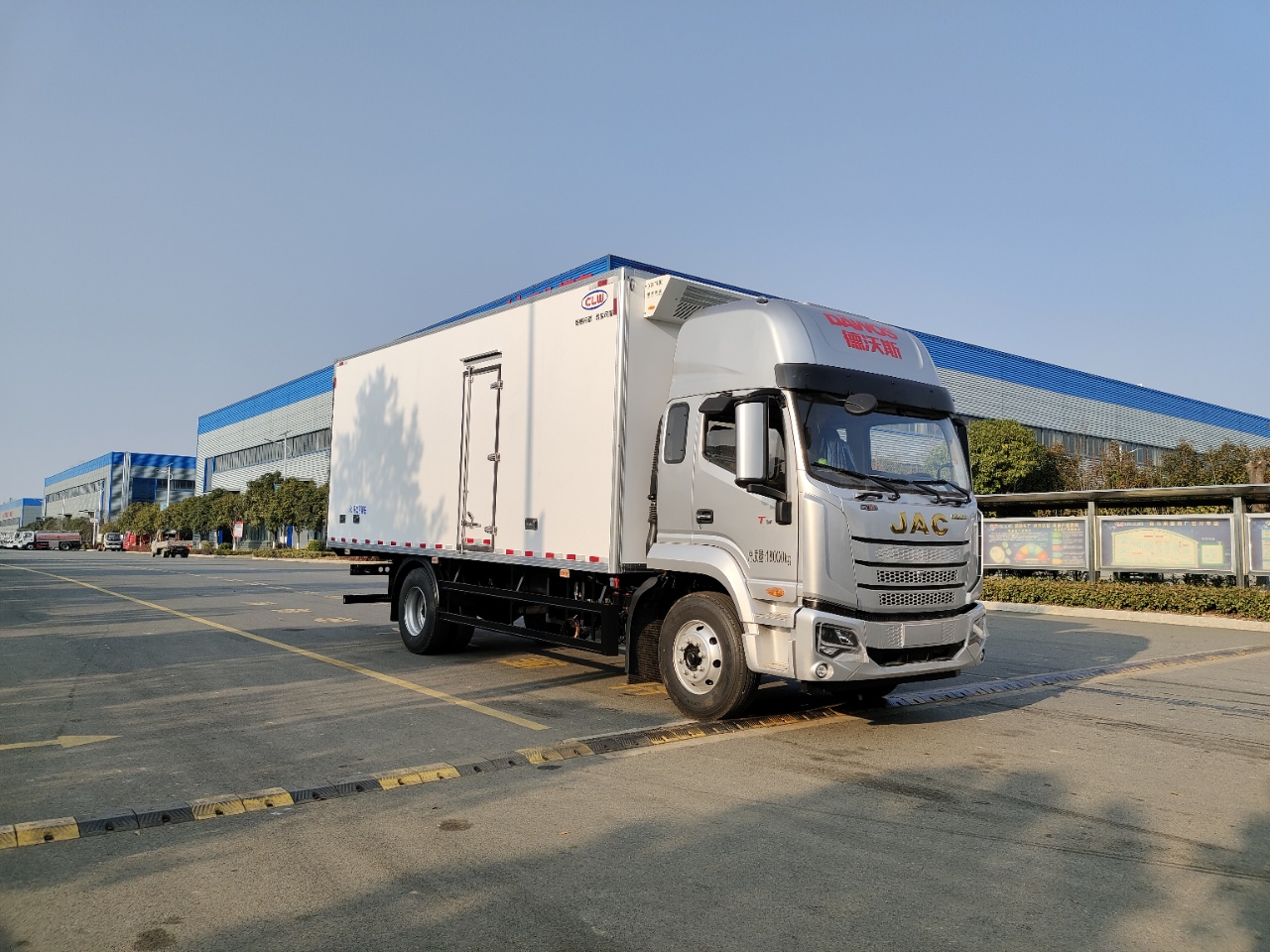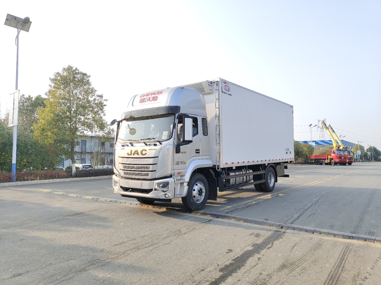 江淮德沃斯T9國(guó)六冷藏車整車型號(hào):HFC5181XLCB80K1E2S,整車尺寸:9150*2600*4000mm,箱體尺寸:6800*2450*2500mm。選用的是玉柴290馬力,定制的是法士特8檔變速箱,5000mm軸距,選用的是