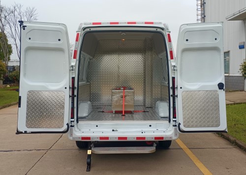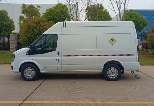 江鈴面包式國六放射性危險品車專用裝置為鉛屏蔽防輻射箱、輻射檢測儀。該車為危險品運輸車輛,車輛類型:AT型,介質類項號:第7類。專車專用,箱體更加符合標準,讓您用車更無憂!