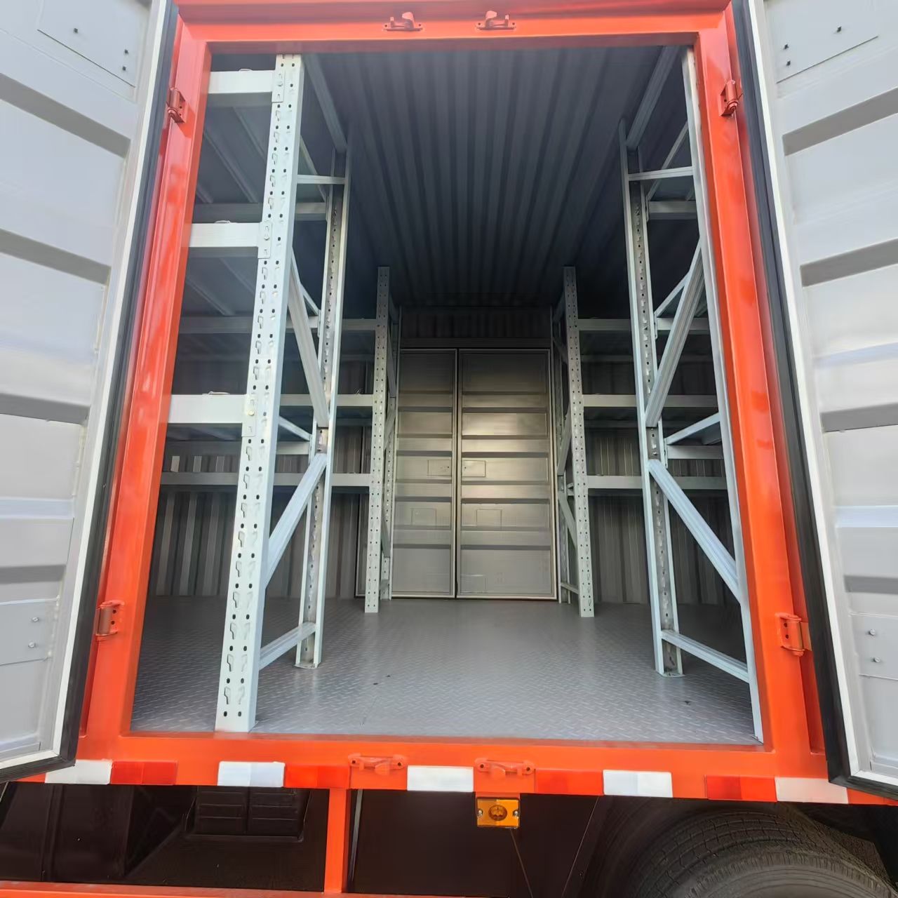 五十鈴國六應急裝備車選用的是后排獨立座椅,高清儀表盤,氣囊減震座椅,貨架全部采用的是鋁合金,為了行車安全全部采用的是全景影像,箱體可以左右開門,尾部加裝有液壓尾板。箱體選用的是冷軋板折彎而成的瓦楞板,箱體內部采用的是幾層貨架,用來放消防器材、移動設備、維修設備。