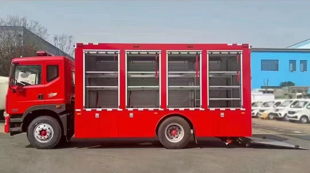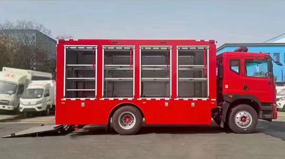 東風D9國六裝備車選用的是專用底盤,整車容量大,機動性強,配備液壓升降尾板,操控方便,可運輸專用救援器械、設備, 為現場救援人員提供有力保障;也可運送生活保障物資,以滿足災民在突發事件中的基本物資需求。可選多款發動機,貨箱尺寸可多選。內部結構多樣化,根據不同需求定制不同的樣式。