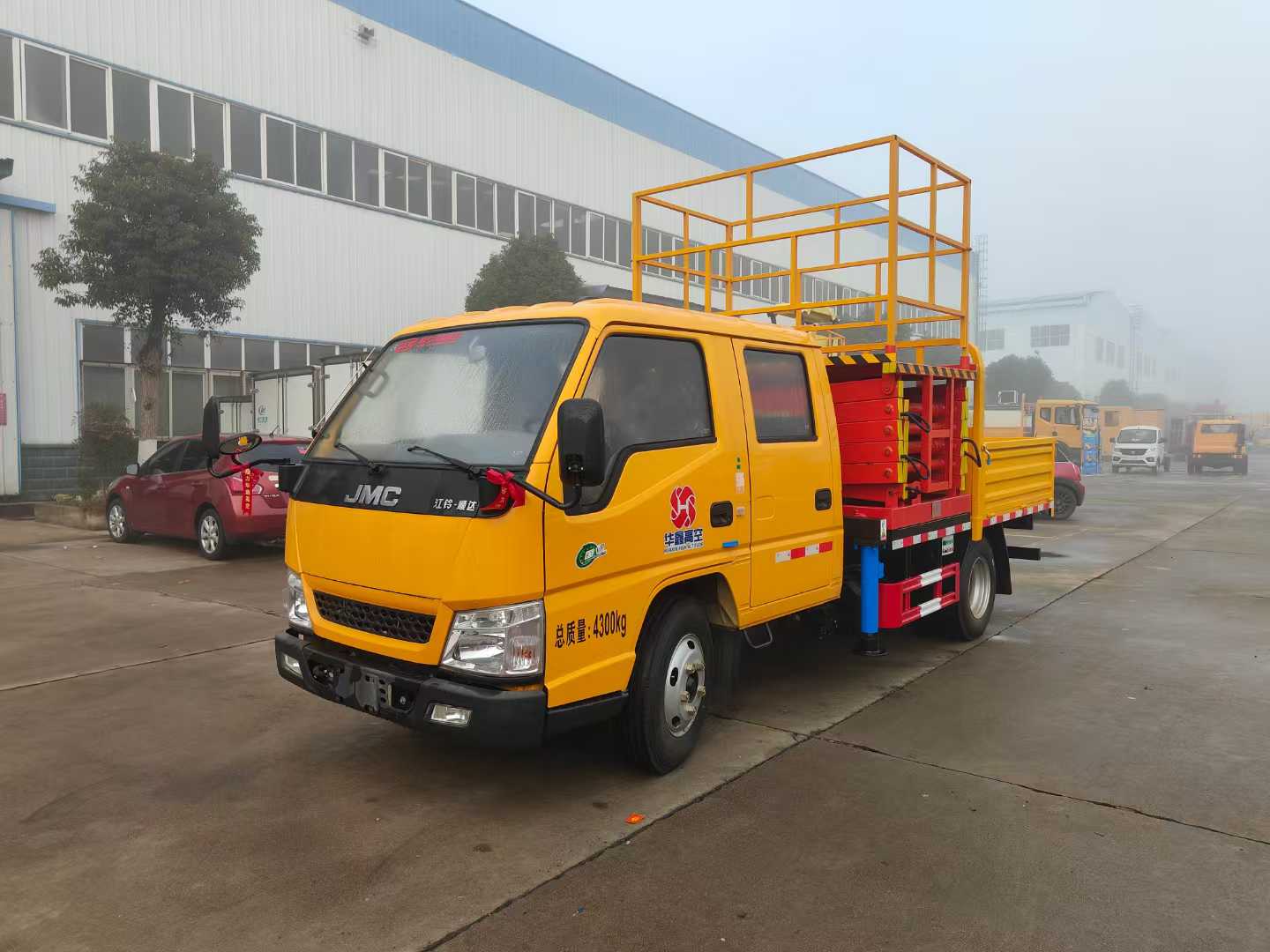 江鈴12米國六帶升降平臺車公告型號:CL5045JGKA6DS,底盤采用江鈴122馬力發動機 ,7.00鋼絲胎,油剎,五檔變速箱,帶助力帶空調,前橋2噸,后橋3.5噸,帶原廠ABS,排氣制動。上裝匹配了專用平臺,平臺作業高度可選8米、10米、12米,平臺帶有線遙控操作,目前工作平臺額定載荷:≤500kg,為了維修方便,平臺容納人數:3-4人,支腿可單獨控制,帶自動調平功能。