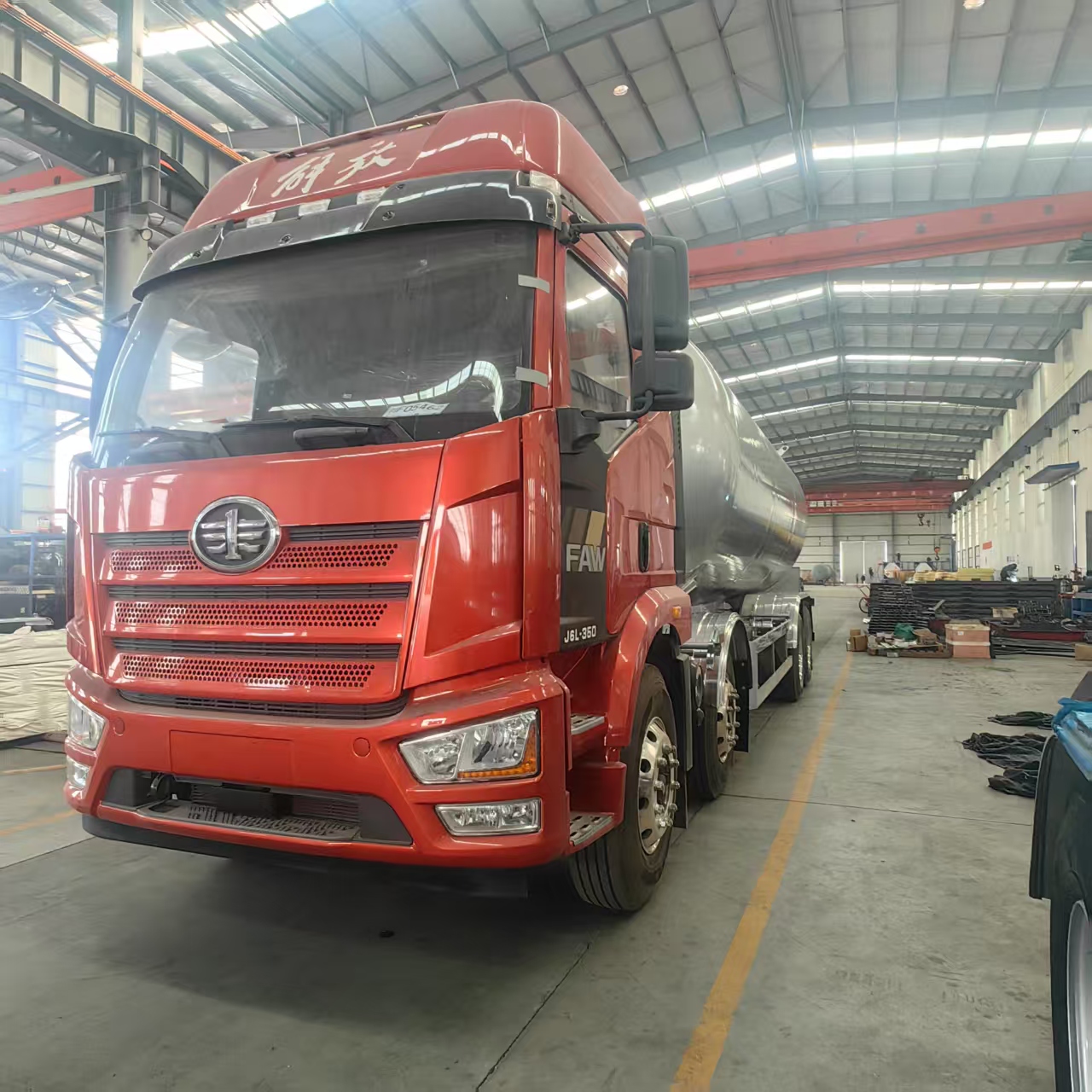 解放J6L國六液化氣罐式車罐體有效容積: 37.2 立方米;介質:商品丙烷,設計壓力1.76MPa,Q345R材質,封頭8mm/筒體12.6mm,單側出液(自流、下裝下卸)帶緊急切斷閥、球閥、安全閥、液位計、溫度計、壓力表、5km報警、手動遠程關閉控制系統、靜電接地卷盤,靜電接地電、鋁合金閥門箱,單鋁合金工具箱,鋁合金擋泥板。